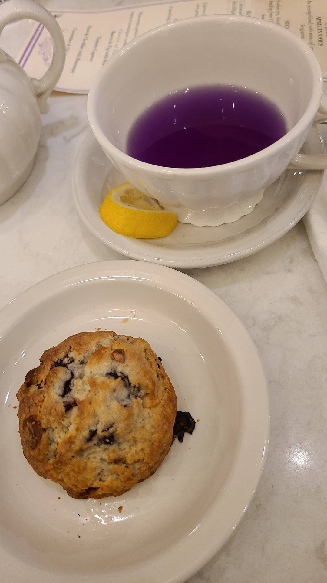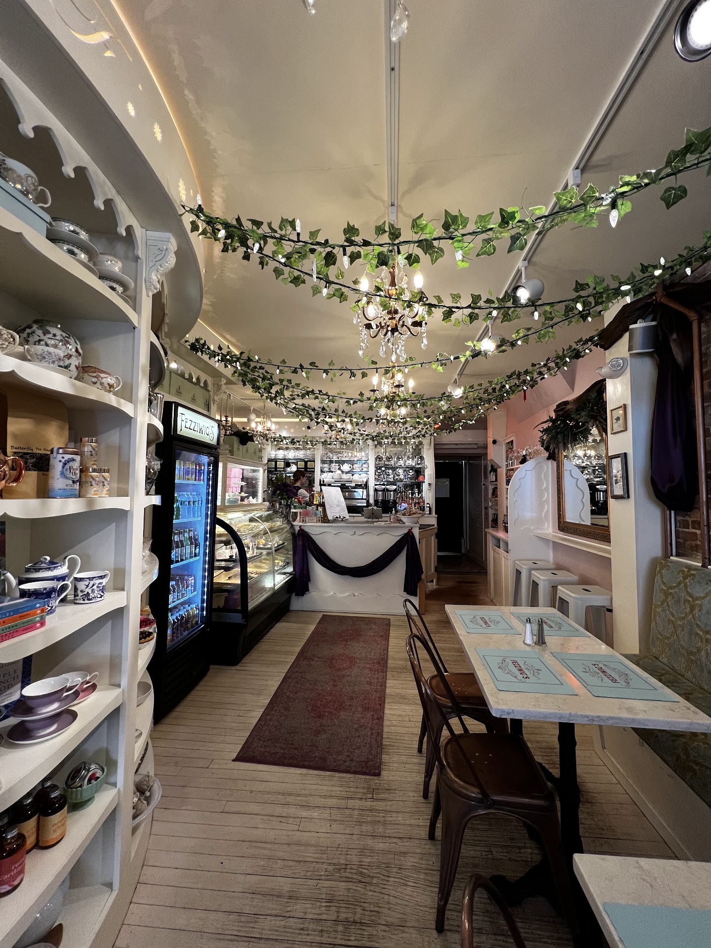 Let me tell you, we walked away and all we could say was... Amazing! This place is just a perfect lil gem near downtown Portsmouth, NH. We walked in and we were immediately greeted and seated. They took our order promptly and then we had time to absorb the juju. Sparking lights decorate the entire space from the ceiling with walls of shelves of delightful little treats and knick-knacks one could buy... from tea to tea cups!