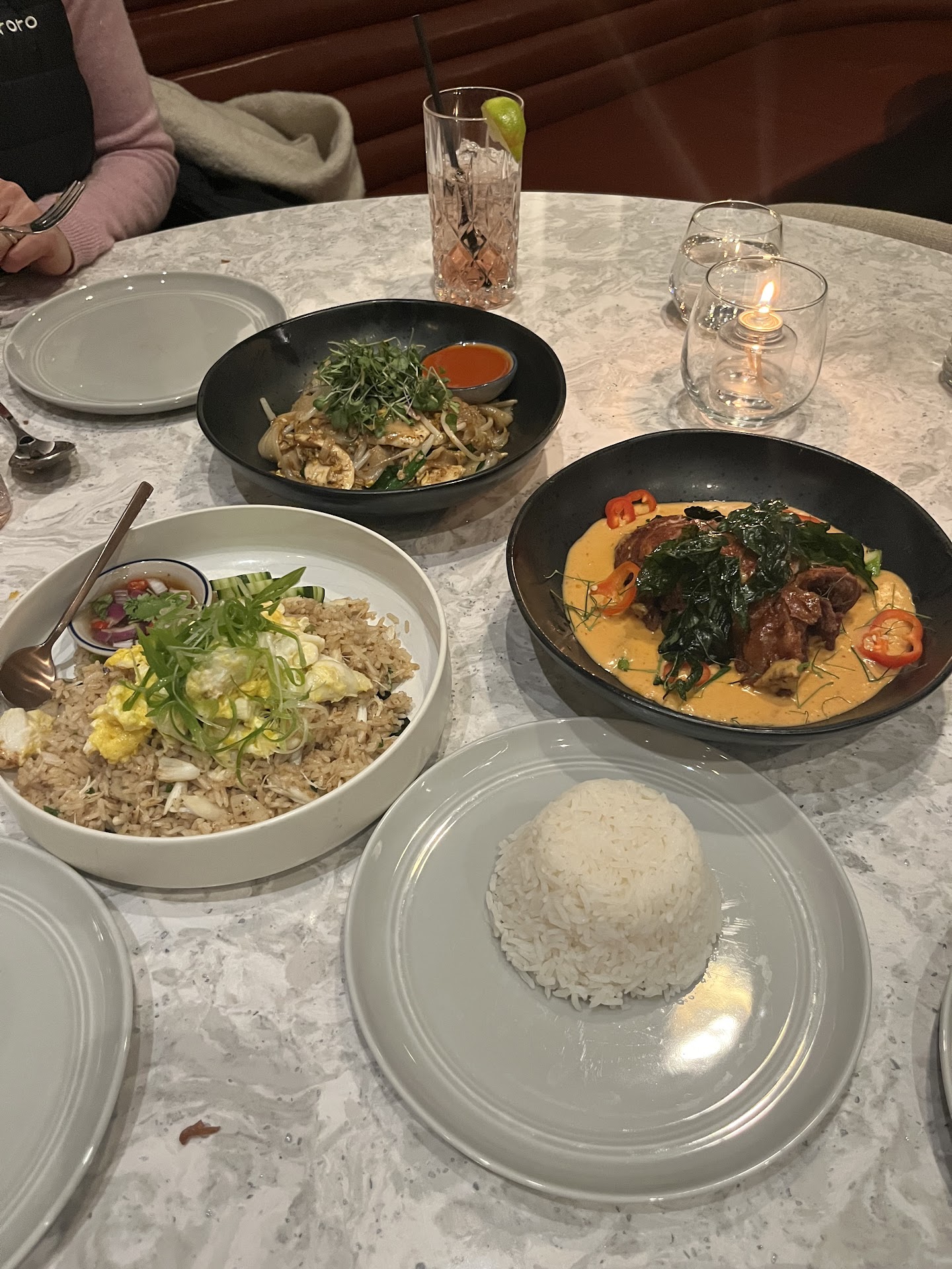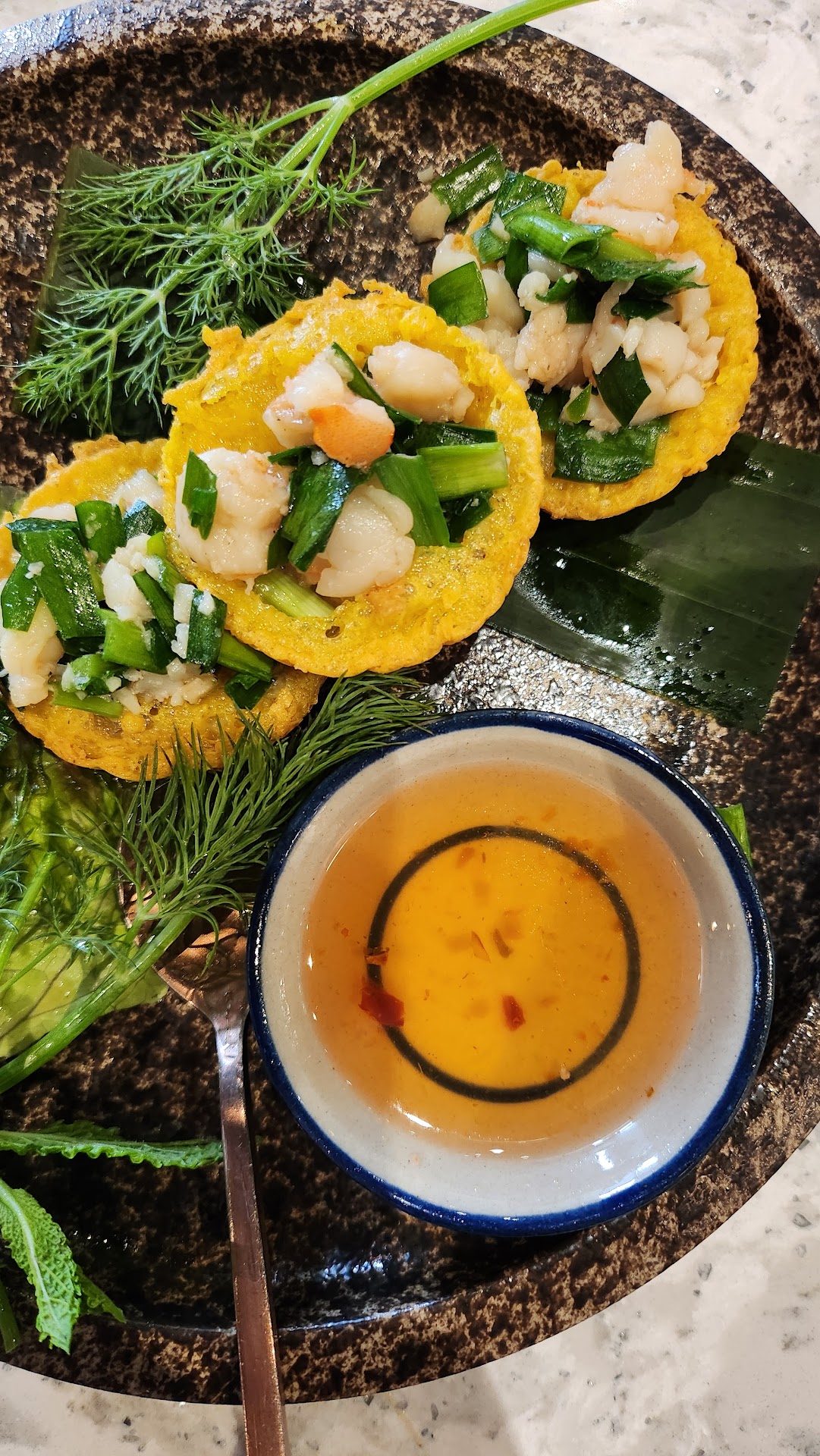 For the price point I think the quality is there. Out of all our dishes the cake surprised me the most - they put fried shallots on top of the flan! At first my brain was like, "huh, what?" As soon as I tasted it all together however the combination made sense. The crispy and salty shallots blended beautifully with smoothness of the flan, the sponge cake and the ice cream. It's one of those dishes you can keep getting a bite of and it never gets boring. And that I can attest goes for everything else we tried. The pancakes, too, had an interesting texture. The center was soft from holding the shrimp but the other rim was still crunchy. There was also a sweetness in that dish that kept me guessing and going back for more. My partner loved the rice crisps on the noodle dish, though he only wished it was spicier! (Which isn't a bad thing!)