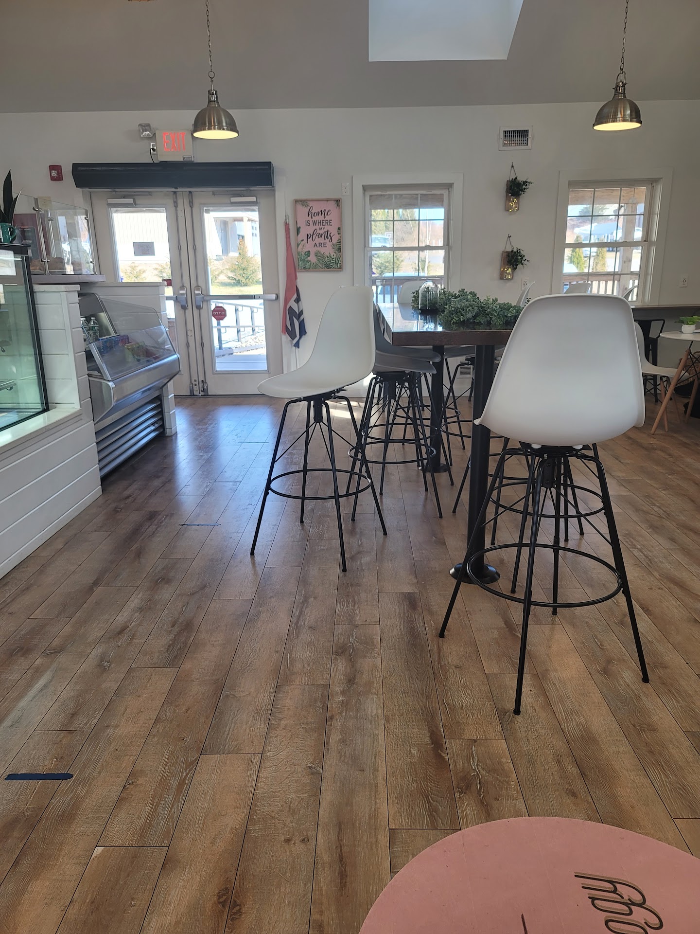 At first glance the building seems kind of bland on the outside however one you walk in you are moved into a very lively and open floor plan. The place is very lightly colored with a lot of white and windows to let in natural light. By no means is this a dark place. A counter and kitchen take up some of the building and a bunch of smaller tables occupy the other half. All finished up with a small unisex bathroom.