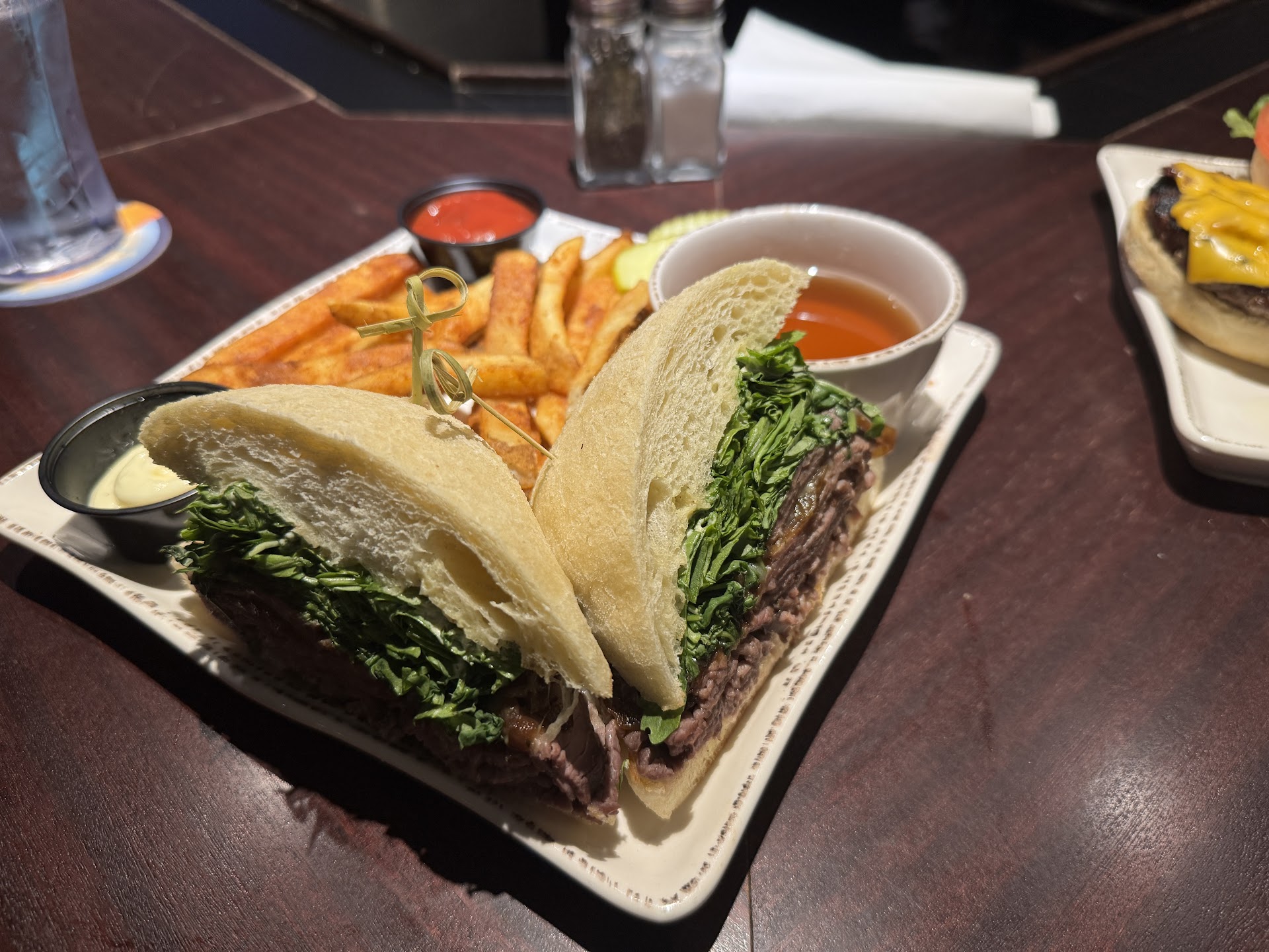 Read moreYuk, Gross and Going Out Of Business are the best adjectives I can find to describe this place. We were in the tradeport looking for food. Paddy's web listing said it closed at 6 but we figured we'd try. Hidden behind overgrown hedges with a cracked parking lot with weeds growing through. Sad, weathered awning leading inside. Worn carpets in the entry. It sure looked like it was about to close permanently but the parking lot was full so we decided to try. Turns out the lot was full for an Exeter HS reunion. Otherwise the place was completely empty at 7pm on a Saturday night. With good reason it turns out. Service was slow and the waitress kept blaming it on the party--yet there were 4 servers standing around and no-one else seated and the Reunion wasn't ordering from the kitchen. I had the steak frites, which I ordered rare. It probably was rare but the meat was gray all the way through--likely because it was old. It also wasn't the NY Strip promised but some lower cut of flank steak or whatnot. Fries were soggy. I give the place a 2 rather than 1 because the jumbo pretzel appetizer was pretty good and the waitress was nice. My son's patty melt was similarly gray throughout--health inspector take notice. Wife's sirloin tips were bathed in some strange tasting gravy. Drinks came after the meal. Couldn't hold a conversation because the Reunion party was doing very loud god awful Karaoke in the bar area. Small wonder it was empty. Epilogue: everyone woke up very thirsty--obviously MSG is a principal ingredient in their cooking. There is just no reason to go...
