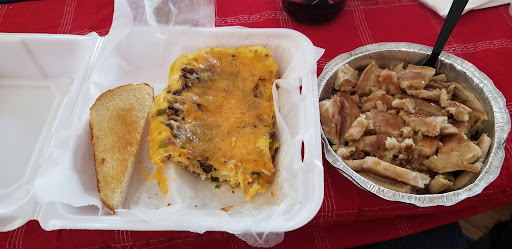 Ā Ā Ā Read more1st time there and it was a little shaky. Waited about 20min for our order for 2ppl. The pricing was very deceptive. Everything on the menu is listed in whole numbers but when you get your receipt there is an additional .30-.45c(pictured) on each item and an undisclosed credit card tax which would've been fine if I'd known, making the bill higher than expected. Ordered pancakes, omelet, homefries, bacon, and eggs. Made a rookie mistake and didnt check the food before leaving. Once home, we opened and were immediately displeased. The toast had hair on it(pictured), the scrambled eggs had shells in them, and finally we had sausage instead of the bacon which we were charged extra for. The pancakes were a bit to dense for my taste specifically, even tho they had good flavor, but that's a me thing. Homefries were good and seasoned well. But to top it all off at least we were given free apple juices. Staff were nice and welcoming too. Was expecting better being that they are a sister to the Philly Cheesesteak restaurant right down the street that I frequent and...
