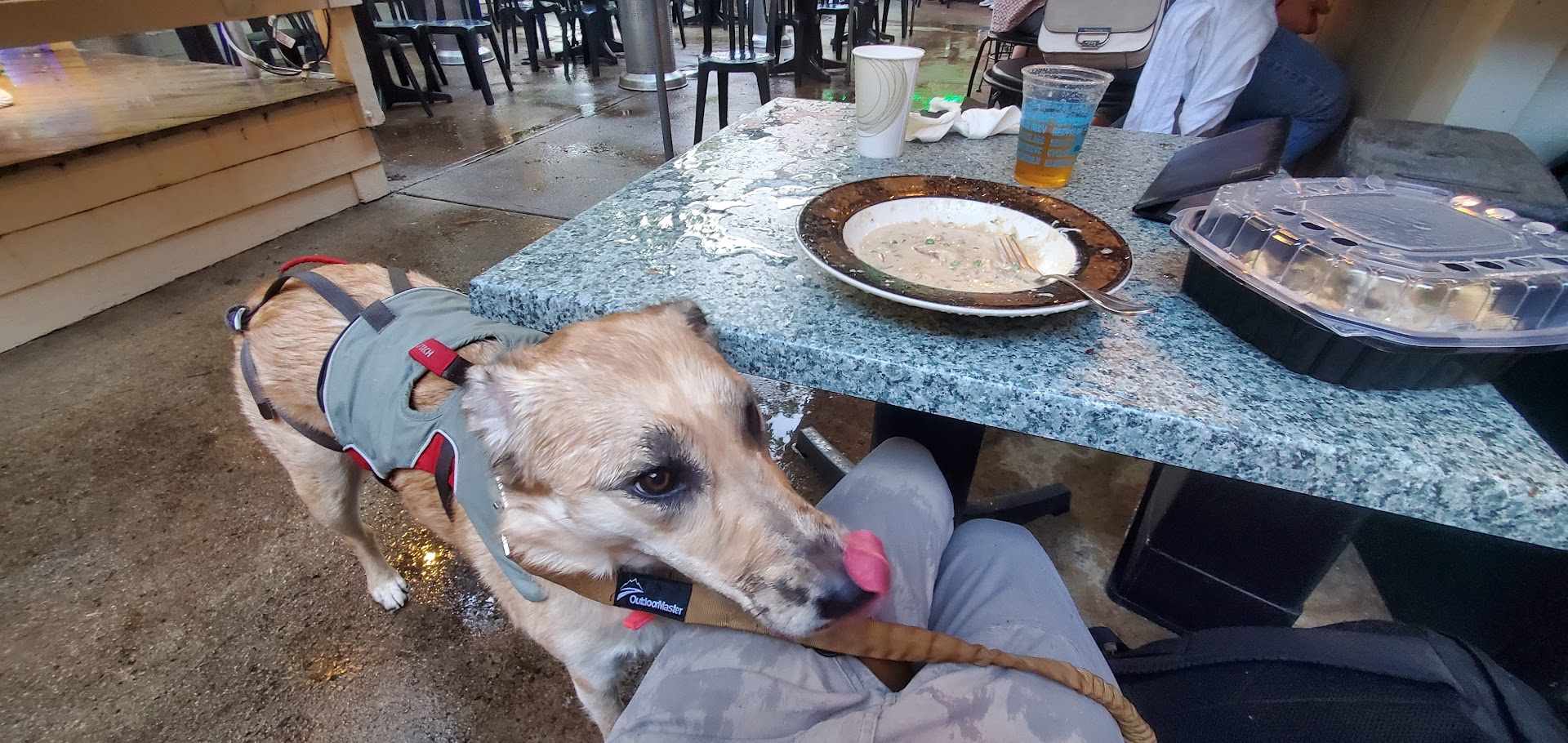 We decided to place our order (not asked) and ordered a cup of chowder and our entress. He asked if we wanted the chowders to come out first and then he would bring out the entrees. We agreed and continued on. Our chowder came fairly quickly and was hot and tasted very good. We were close to 1/2 way done with the chowder and our entrees were surprisingly delivered. NOTE: When anything was served (drinks, apps, entrees and bread), it was placed at the front end/edge of the table. They were not served or placed in front of us.