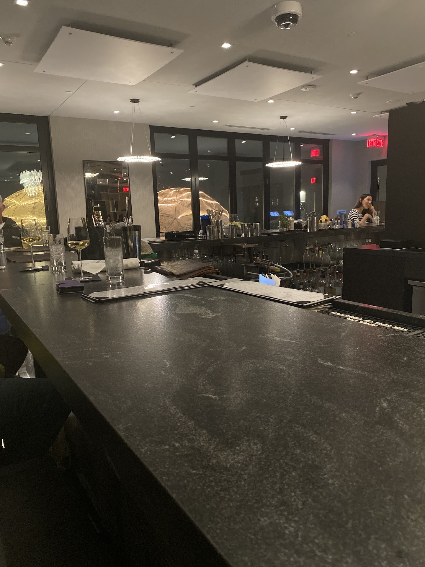 Ā Ā Ā Read moreBy, far, Envio has the most limited dinner menu I have ever seen during covid, so much so that I was worried we would leave hungry. (more of a lunch menu than a dinner menu). Given this, the selection process became more about not leaving hungry vs choosing something that sounded interesting or different, which there wasn't much of anyway. Another reviewer characterized the menu as quasi-tapas, and I would say that is pretty accurate. We each ordered two meals (several double orders again due to the limted menu) and that ended up being about the right amount of food. Most menu items were reasonably priced for a hotel-based restaurant, but when you have to order two meals each to get an adequate amount of food, it adds up quickly. The food quality was actually very good and I especially liked the meatballs as well as the very petite filet. They also had a good old fashion cocktail. Service quality was ok as was the view. Just not a lot to see four stories up on the outside of town. The atmosphere of the restaurant was new, modern and upscale. The main downside was that it felt cold outaide for dinner, even with a jacket on in July. So cold in fact that when the meal was over, we couldnt get out fast enough. This place could really benefit from some heat lamps and maybe taller glass railings to limit the breeze. On the plus side, given the outdoor environment, it did feel relatively safe from a covid perspective. Someone mentioned that meals were being served takeout style. That was not our experience. We were given real metal silverware and cloth napkins, although drinks and food were still being served using plastic plateware and cupware. Granted, the plates and cups were high quality plastic, but still plastic nonetheless. Really surprised by that. Everywhere else we go these days is using normal plateware and cupware. It felt like Envio is not keeping pace with other comparable restaurants in NH on this point (and several others) Bottomline: Check the menu carefully before you go. You can't assume you will have lots of choices. You won't. If you are on the fence about going, maybe go for lunch on a sunny day. The menu definitely feels more like a lunch menu than a dinner menu anyways. Unless they actually come out with a real dinner menu, I can't imagine we would ever go back. There are just too many other better options...