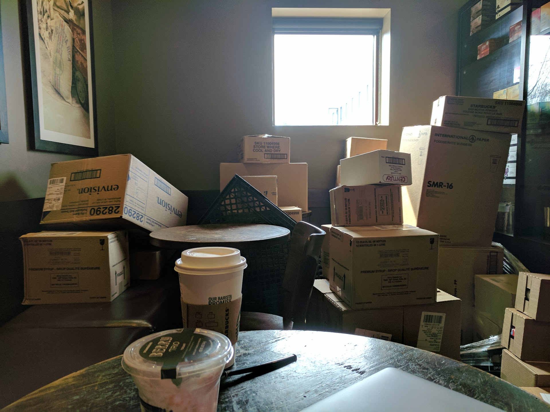 Even now, with things being chaotic because of the pandemic, this location is always calm and orderly when I end up going inside to order. I never wait for my order for long at all (I always walk inside instead of using the drive up) and the store is clean and empty of furniture to provide for more than adequate social distancing...