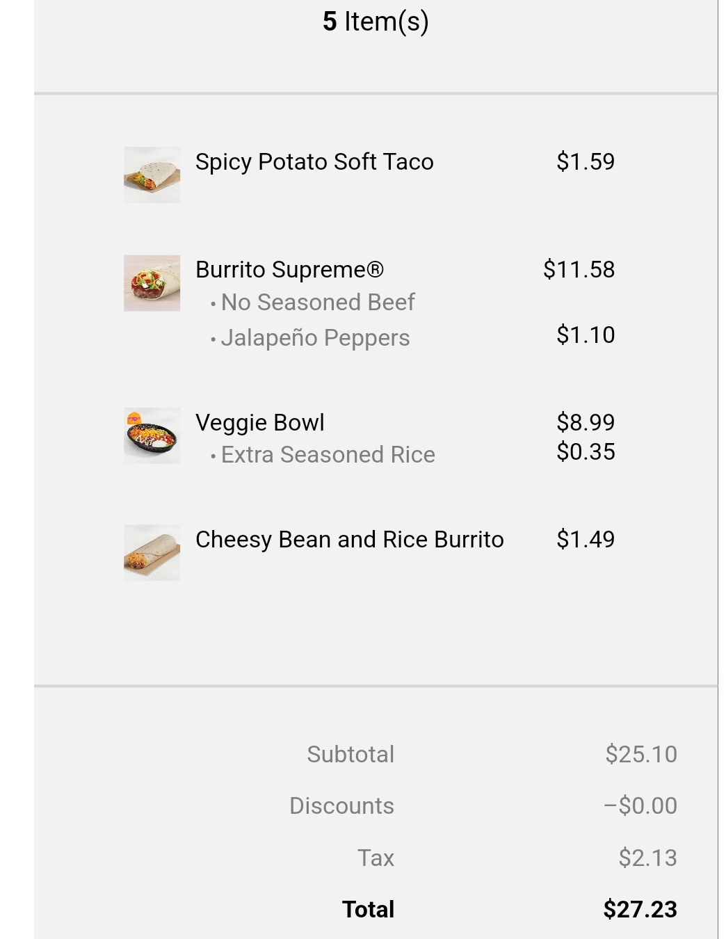 Read moreMy friend and I went to this Taco Bell. I should've just listened to her when she told me it sucked. We get to the drive thru, and there's seven more cars in front of us, hence was the dinnertime hour. I thought that was no biggie, until we waited in line for almost thirty minutes. Finally, we got to order but the guy forgot my taco and was super rude. It took ANOTHER fifteen minutes just to get our food, and when I told the girl that they forgot my taco, she put a finger in my face and said "oNe SeCoNd", acting like it was a HUGE problem. I only said to her "is my taco on there?" rude. The manager came to the window and asked me if I ordered a taco and I said yes, and added it to the order. IT WASN'T EVEN A PROBLEM!! she could've just added it to the computer and got on with her job. Finally we got our stupid food that I just wasn't in the mood for anymore and it tasted absolutely terrible! The doritos taco didn't even taste like a dorito taco, it was a regular taco with orange powder on it, and I'm really concerned what that was. The quesorito was absolutely PUTRID. Wasn't even prepared correctly, rice and beef all on one side, and on the other side with sour cream and the "secret sauce" spilling out. Not evenly distributed and absolutely disgusting! Workers are also wicked rude, if they really don't like their job then they should work somewhere else. The manager was the only nice worker there. Will...