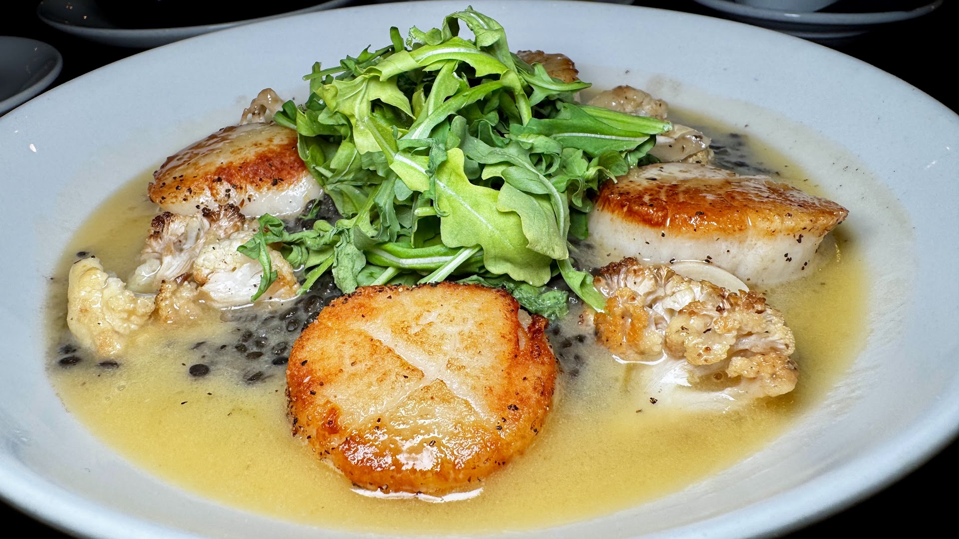 For the main course, the pan-seared diver scallops stole the show. Perfectly caramelized on the outside and tender within, they were accompanied by roasted cauliflower, earthy lentils, and a silky beurre blanc that tied it all together. Every element on the plate felt deliberate, balanced, and satisfying.