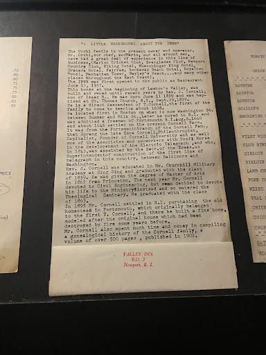 Read moreWe had a lovely time with friends at The Valley Inn. We were visiting from out of state and our friends know how i love haunted things. This restaurant is supposedly haunted by a woman who died here. There is an episode on the Travel Channel on this as well. The food was great, with my meal came a stuffy amd a soup. We of course all got the french onion that was delicious. For my main meal i had the lobster ravioli in a pink sauce kind of like vodka sauce it was the best Lobster Rav ive ever had. Everyone's meals look and tasted amazing. 1 of our friends had a salad for dinner that looked so tempting. My husband had the swordfish he ate so quickly over two huge asparagus. He didnt share his meal lol and that says alot . He ate every last bite as did i even tho i was kind of full i couldn't stabd to let it go to waste. This evening we didnt have dessert. When leaving the restaurant we walked over to see someone the old restaurant menus on display as well as a selection of books written on the murder case. The owner saw us all browsing and came over to talk to us. He was so nice and friendly even giving us some info not told in the episode on Travel Channel. He was so thrilled that we came to eat there being we were from out of state. He was happy we stopped by and is such a nice...