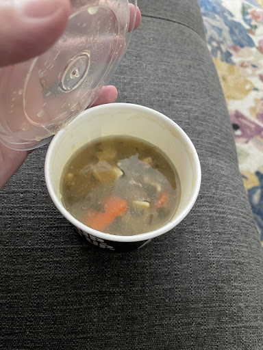 The food was maybe a 2/10. We ordered 2 sandwiches, a bowl of soup, and a kids grilled cheese. The only item we would go back to get is the grilled cheese and it wasn’t anything special. Both sandwiches were ok, but very bland. This is the soup we got for $5.50. After tasting it we were happy we only got half a container.