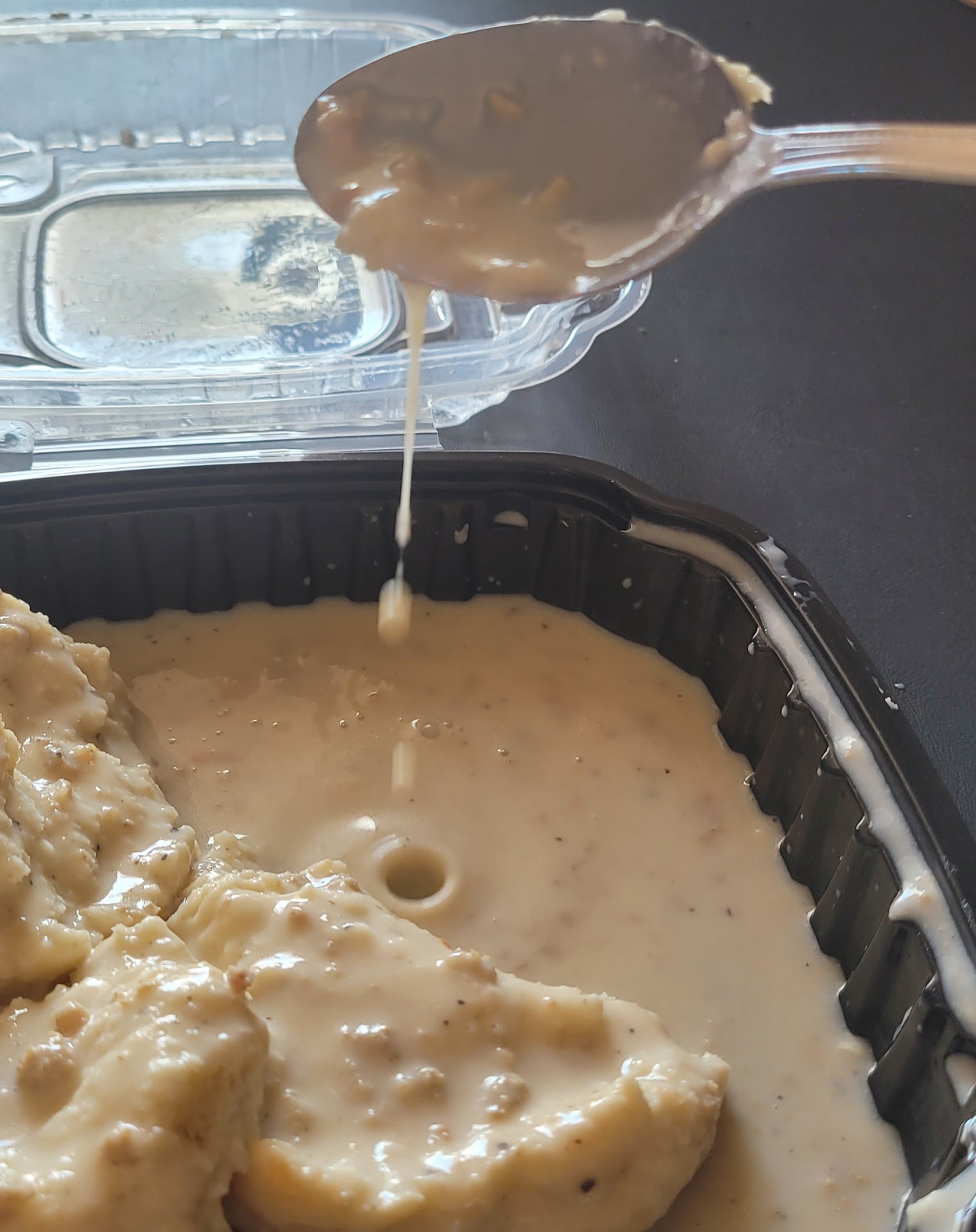 My girlfriend chose the biscuits and gravy, a choice she often finds challenging to enjoy at other establishments. However, she was pleasantly surprised at The Corner Cafe. The biscuits were incredibly fluffy, with a perfect texture that didn't crumble immediately. In fact, she mentioned that the taste was so close to regular biscuits that she could barely tell the difference.