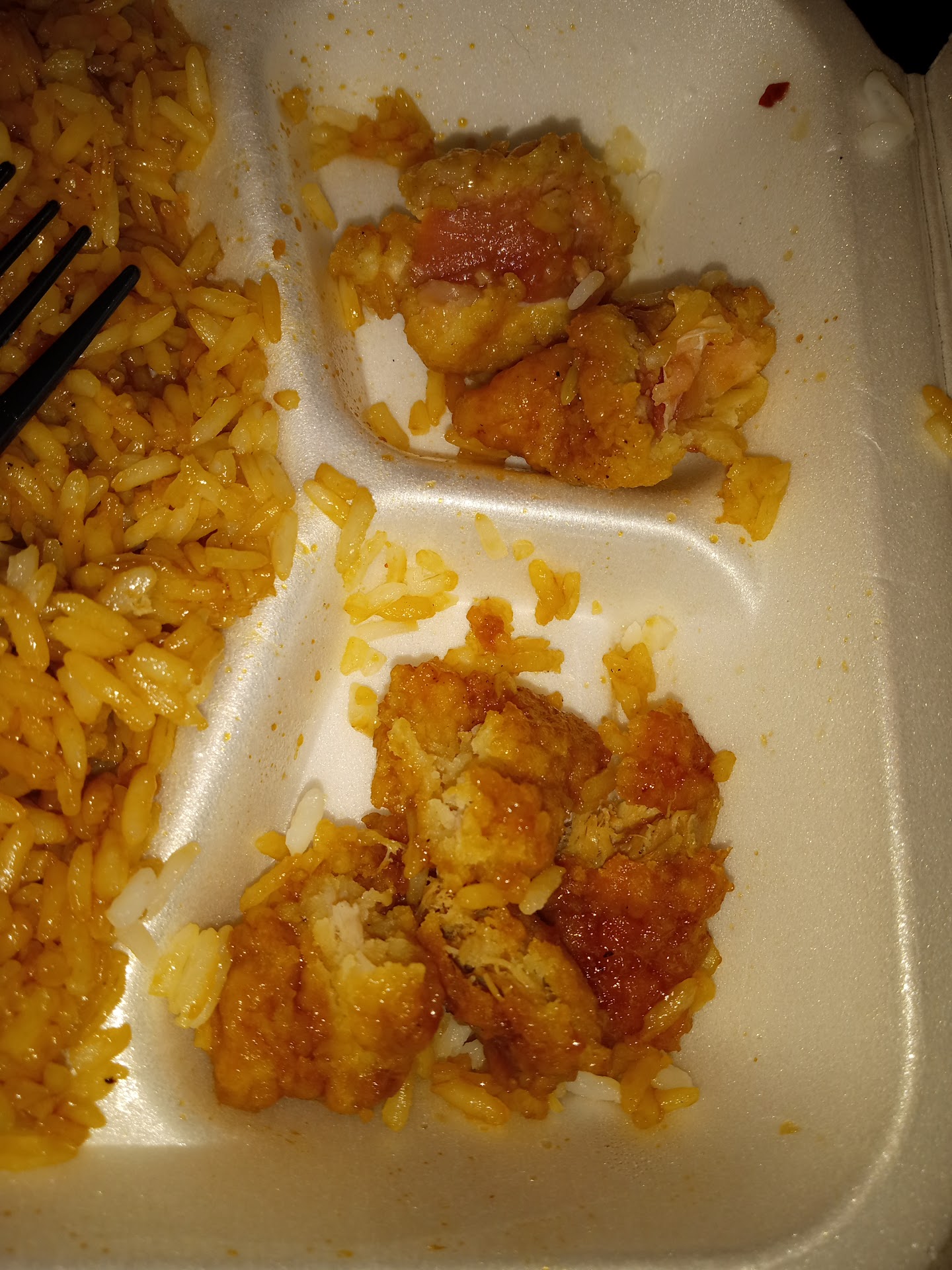 At some point they filled the orange chicken order, and then we had one box still sitting unfilled. I went up to ask what they were still waiting on. They said teriyaki chicken. I said "You had teriyaki chicken a few minutes ago. Why didn't you fill it when it was available?" No answer.