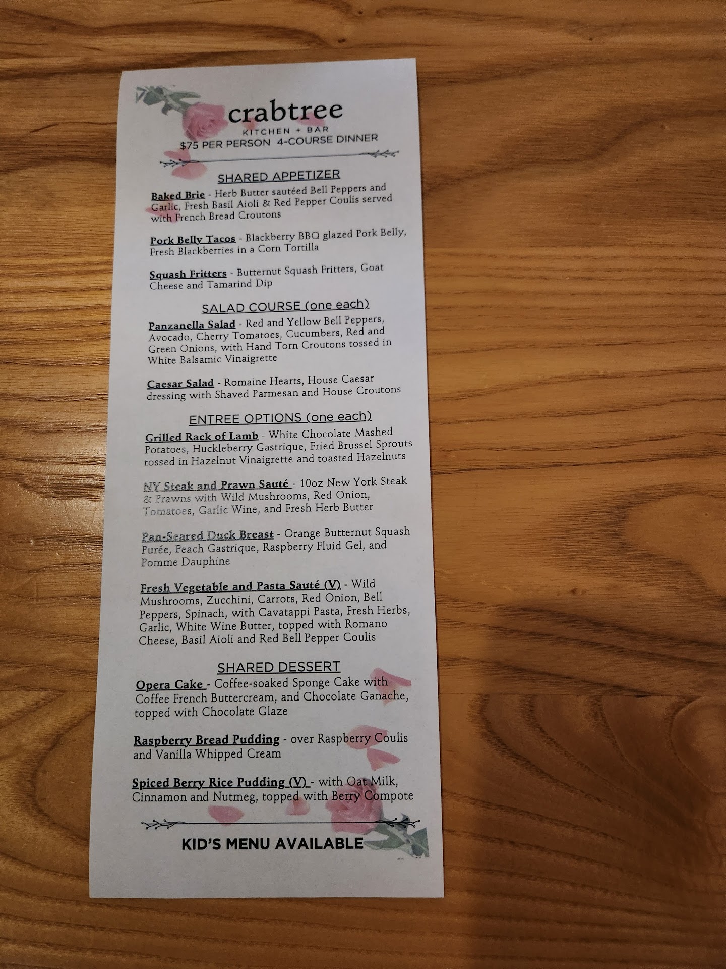 Apart from the fantastic food, the ambiance at Crabtree was warm and inviting. The restaurant's decor was tastefully rustic, exuding a cozy charm that made me feel right at home. The soft lighting and thoughtful layout created an intimate atmosphere, making it an ideal spot for a romantic dinner or a memorable gathering with friends and family.