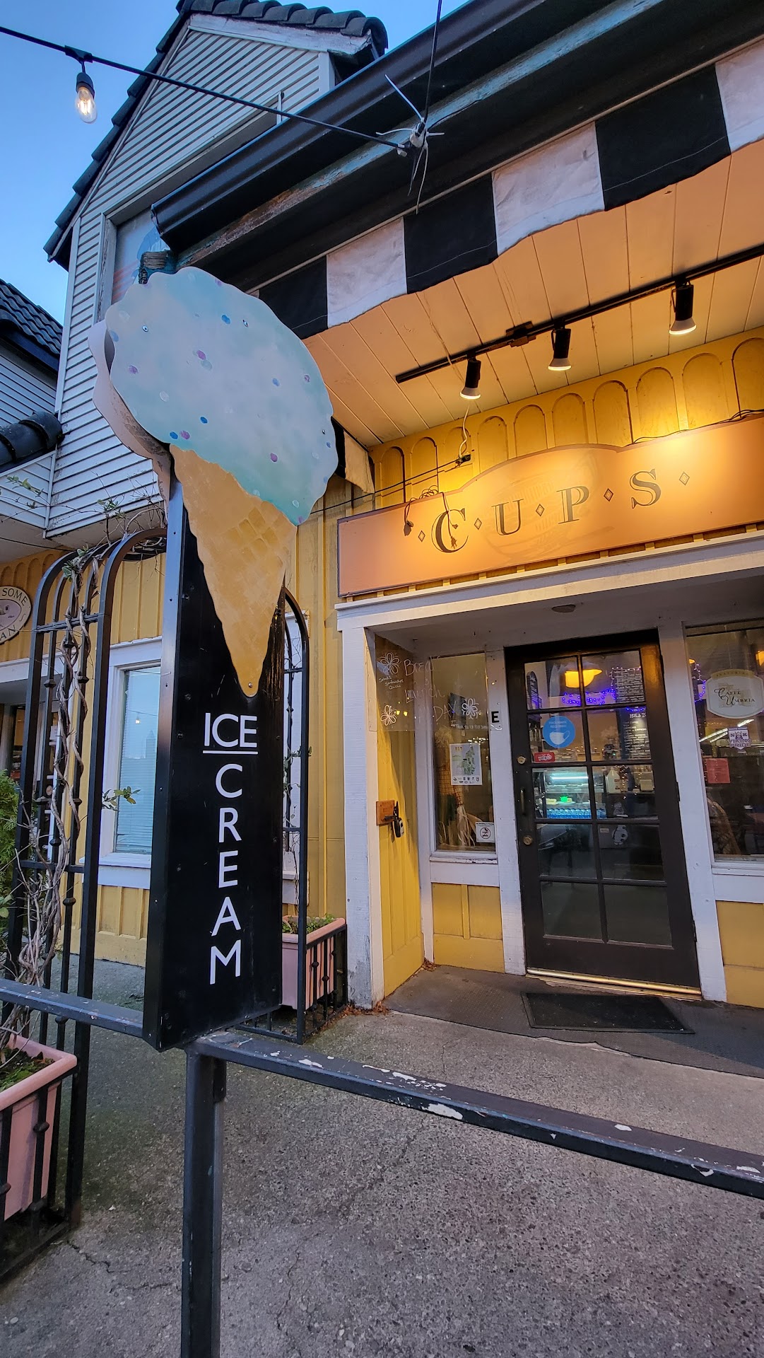 CUPS does not just serve coffee, it serves ice cream and also some small sandwiches too! The staff is extremely helpful and patient willing to go out of their way to help you be fully happy with your beverage/food purchase. The CUPS coffee shop offers both indoor and outdoor seating. If you are indoors, it cute and quaint. If you are outdoors, then you get a fantastic view of the waterfront, marina, shops, and other downtown Poulsbo niceties.