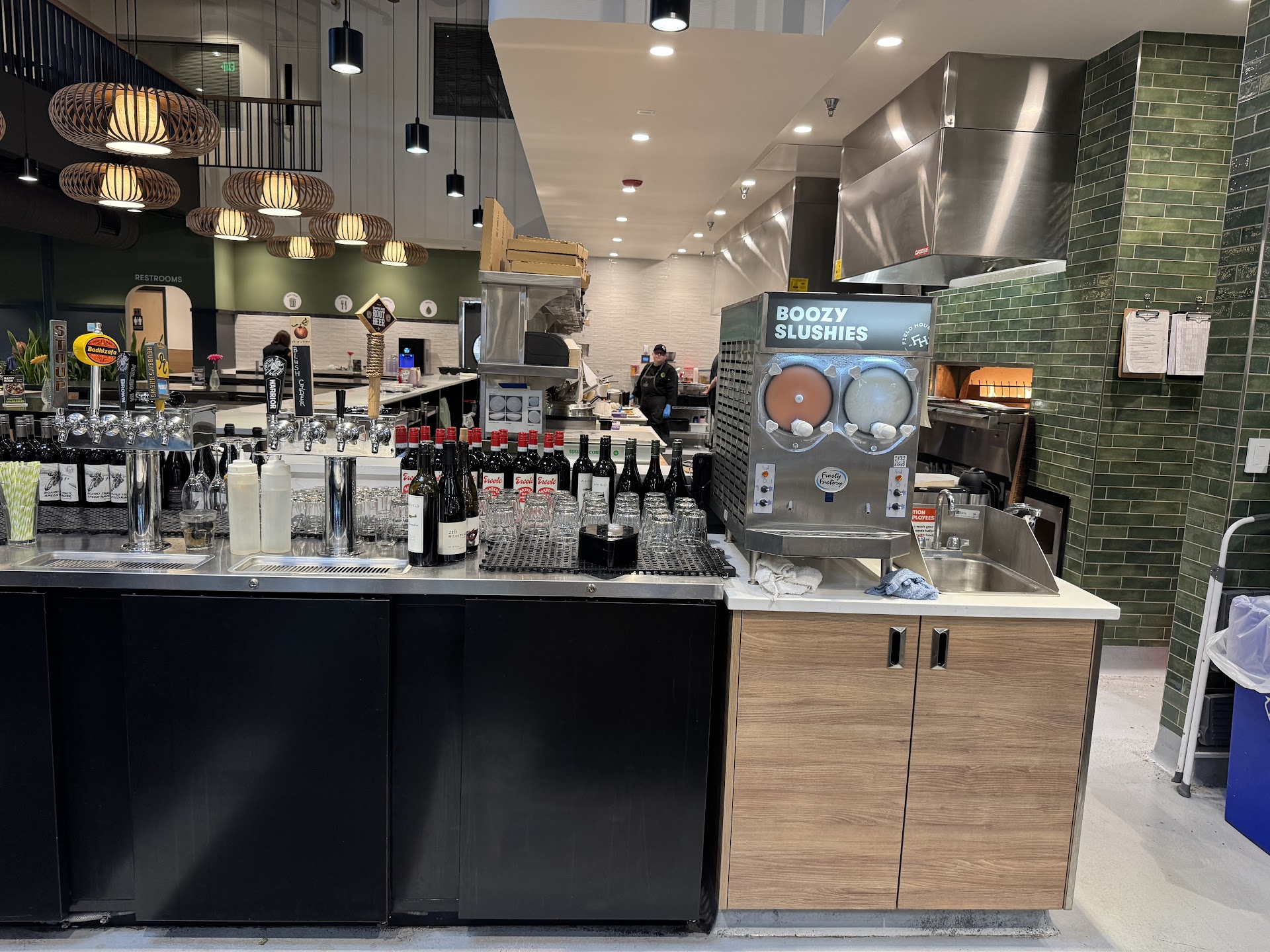 After receiving the pizza I strolled over to the conveniently located “The Field House” counter to review the wide ranging menu on offer. Upon much deliberation, the “American Waygu Chesseburger” and Malt Vinegar fries as sides were ordered.