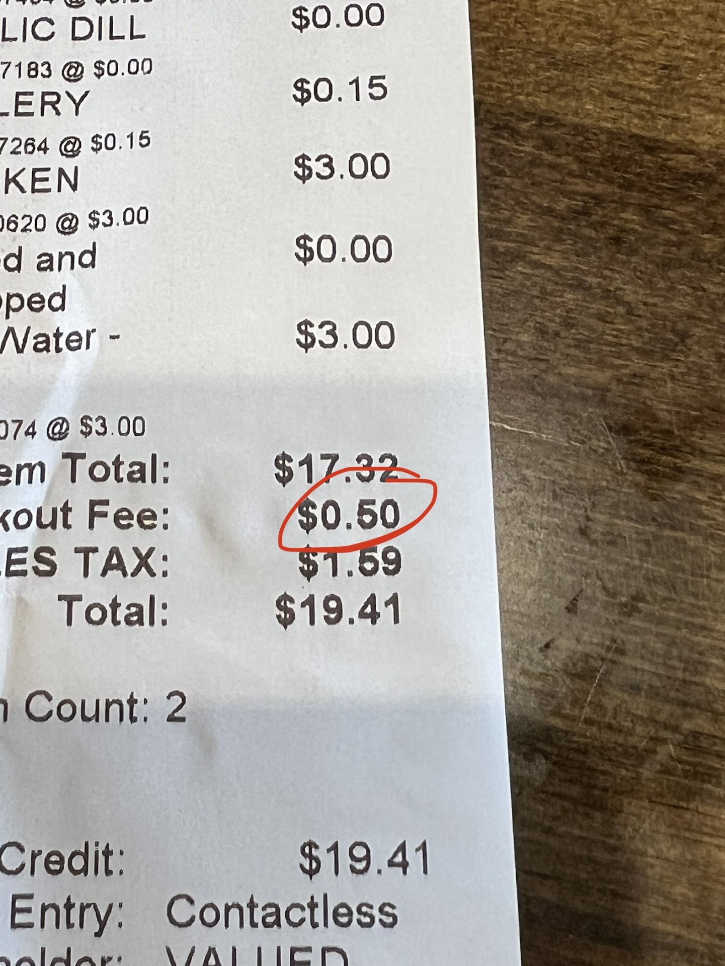 Read moreThis place serves food and specializes in salads and asks me if I would like a fork with my salad and then they go ahead and charge me for the fork. They also charged me to use my credit card, which is dumb, but I've seen that practice before, although not too often, thankfully. But a food establishment charging for a fork? What in the world?!?! Do they really think a person would prefer to eat a salad with their hands. Unbelievable. This has got to be the worst I've ever seen of pathetic ways to pass the cost of doing business on to the customer....