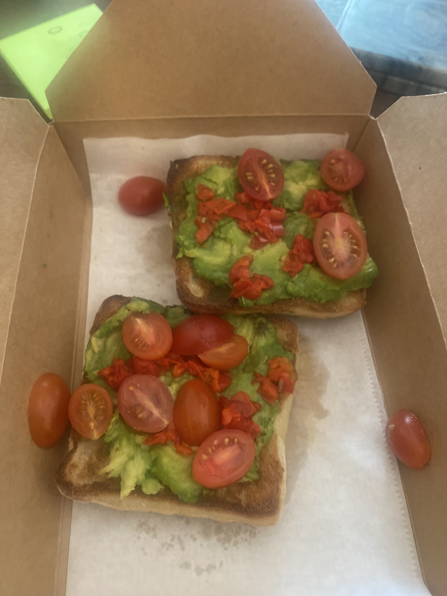 Read moreOrdered this today from my favorite local place in Poulsbo! It’s called Greens on Your Way! They sell the best salads, coffee, and smoothies! Today I ordered this delicious lunch! They put avocado on ciabatta bread, with garlic olive oil, and I choice to have cherry tomatoes and roasted red peppers! Most definitely ordering it again! So yummy! And another thing I love buying from here is there parfait! I usually always have green apples and blueberries. There granola is the best! And I tried there whip cream too, so good! I usually have this DoorDash to me, because I love having there white chocolate...