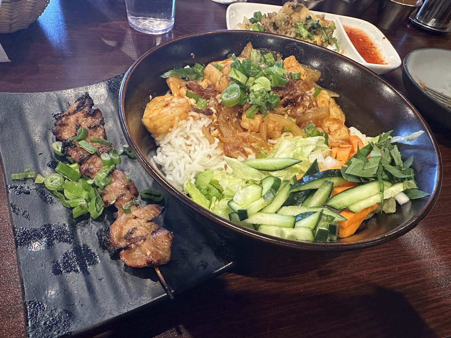 Spring rolls -traditional style spring rolls. Like the ones I grew up with. I was most blown away by the dipping sauce. It taste exactly like the dipping sauce I use to eat growing up. This is the ONLY place in wa I have found with this sauce (that does it right).