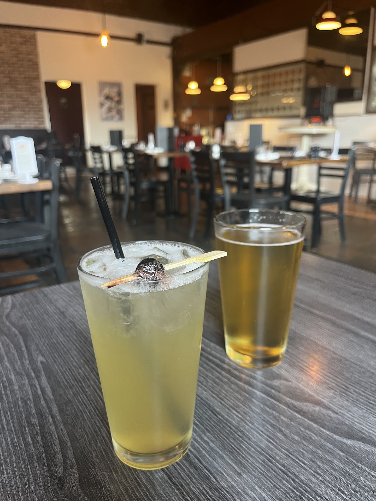 The atmosphere is alright, typical modernized Italian decor with no huge changes from the decor that Sound Brewing had. The pizza is delicious but I'm giving two stars because the 12" pizza we purchased was $22.00 and took about an hour to get to the table. For that price I expect it to at least be the best pizza in town and get to the table in 15-20 minutes like any other pizza joint. The wait staff never once stopped to assure us that they had checked on our order and it was in the works. When we asked at the end of the hour to cancel our order if it was in the process we were told that it was definitely in the oven, but she did not even check with the kitchen. When we asked for our order to be packed to go rather than dining in we were assured that the wait was not normal, that it was just a busy Friday night. There were maybe 10 other small parties in the restaurant and no line at the door... They definitely did not look busy. The problem is the kitchen staff that I watched take nearly five minutes just to stretch out a pizza crust and was definitely taking his time. I worked at a successful pizza shop, it should take two minutes tops to stretch the dough and another two - three to prep and get in the oven. But I think what bothered me the most was that they could not be bothered to bring my $10 wine in an actual wine glass. My wine was served in a tiny whiskey like glass. For the price of everything on the menu, I expect my drinks to be served with a little class. The whole evening just felt like I was paying good money for a bargain experience, I doubt we will ever...
