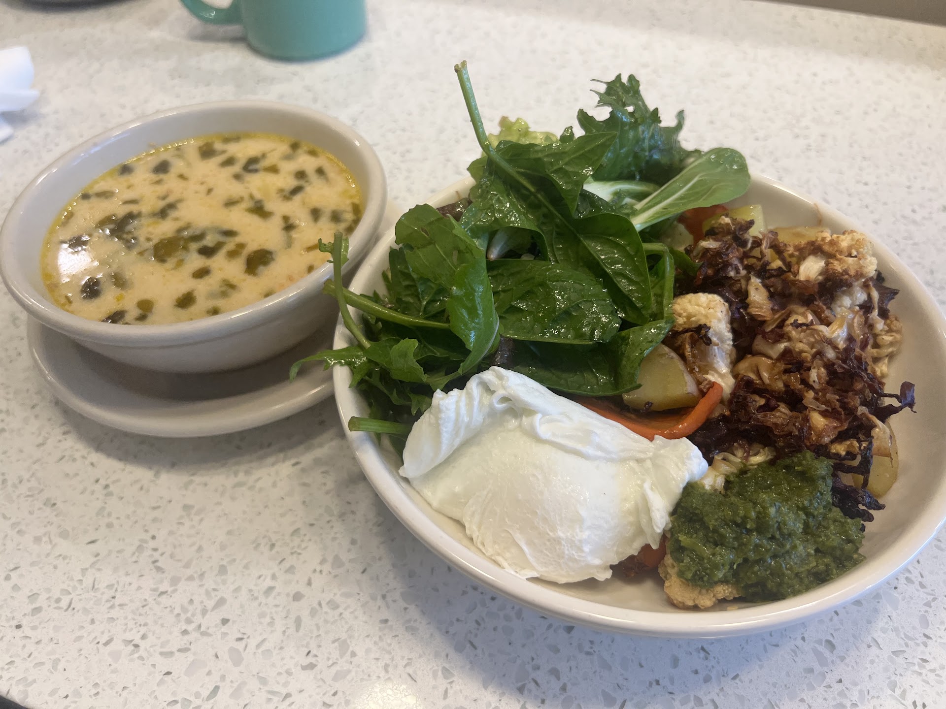 Read moreWe wandered in for lunch while our car was in the shop. My husband enjoyed chicken mushroom soup with crispy cheesy bread. I had the veggie hash with an egg in top. GF apricot oat cookies and chai lattes. Staff was welcoming and informative. It was obvious that our meals were prepared with care. Clean and efficient dining space. Very pleased to have found healthy,...