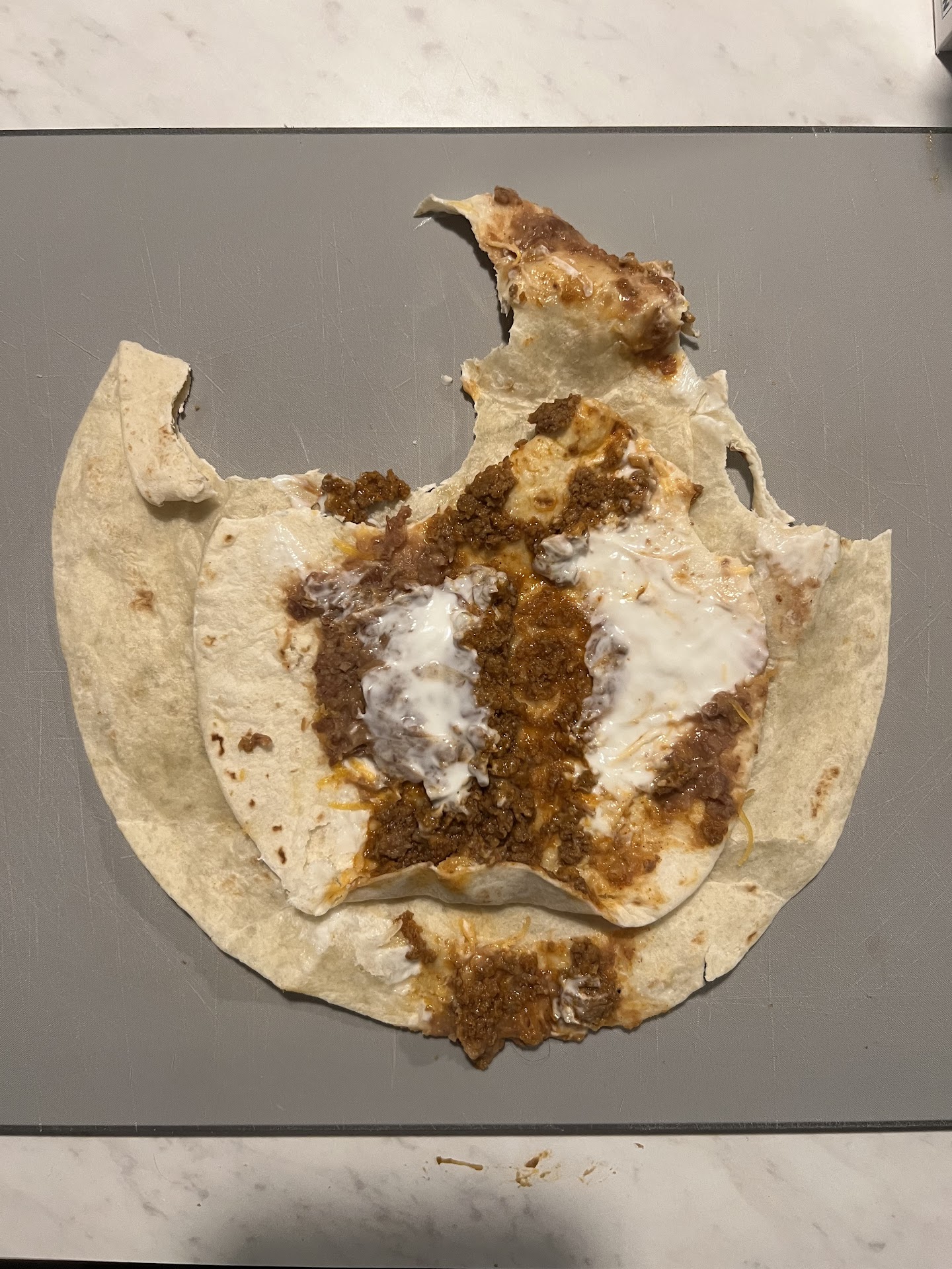 When I got home, I opened my bag and noticed something was off right away. I ordered a beefy five-layer burrito, but what I received could barely even qualify as food, let alone a burrito. It was essentially two tortillas with a pathetic smudge of beans and a squirt of sour cream. There was no beef. No cheese. Nothing that made it even remotely close to the item I ordered. It was like they threw together the bare minimum and hoped I wouldnāt notice. Iām not exaggerating when I say this thing had more tortilla than actual fillingāit was an absolute joke.