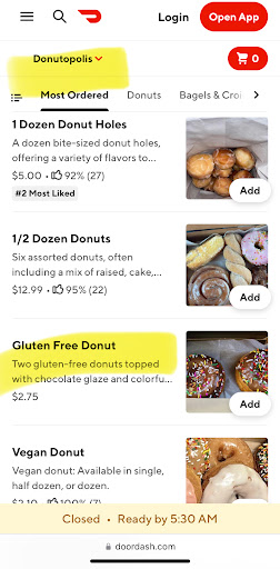 My family and I flew in from across the country and made this place our first stop. I had placed a Door Dash pickup order 2 days in advance for my son’s birthday. When the older man comes out with my box I repeat my order to him, “a dozen of gluten free donuts right?” “No you placed an order for 6. They are $2.75 each.” “No, I placed an order for a dozen”. Long story short…I showed him the proof and instead he went on saying “Oh, that would be too cheap….the other place down the street charges blah blah. Thats a mistake on Door Dash and we’ll fix it later”….I still needed the other 6 donuts and he decided to charge me….see, as a business owner myself, I would have given him the other 6 for free and apologized for that. Then I would have corrected the mistake on Door Dash to avoid future confusion…No apologies from this business. Just pure greed and bad business. I haven’t tried the donuts yet, matter fact, I haven’t even looked at them from how pissed I am. But better be some good donuts...