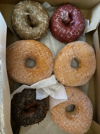 I got half a dozen mixed of 3 sugar, 1 blueberry, 1 red velvet, and 1 chocolate. The sugar dough was a bit dry but it was fluffed, light, and airy. The blueberry and red velvet exceeded my expectation of how good it was! I thought it would be sugary sweet but it wasn’t. It had the perfect texture and semi sweet. You can totally tell it was home made by a mom and pop shop and not like the chain names. Blueberry was my favorite, tasted exactly like the blueberry cereal/cake flavor.