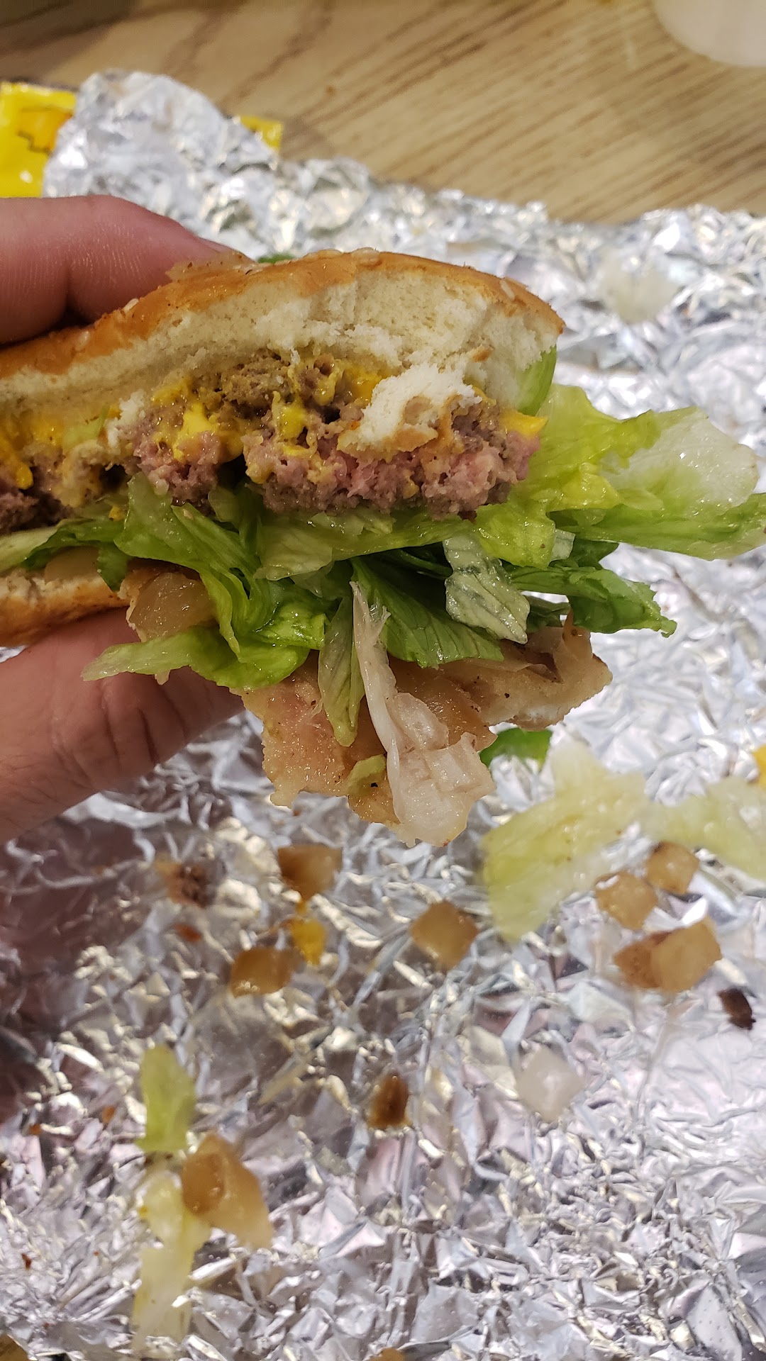 P.S. in the selections below, they indicated “bacon double cheeseburger” is one of the options. But Five Guys doesn’t have an item that they call a bacon double cheeseburger. They have a burger that previously looked like it had two full-size patties on it that most people think of as for a bacon double cheeseburger, but it was actually referred to as the bacon cheeseburger. That was foresight inti the price gouging that they would engage in because they always called it the bacon cheeseburger, even though back in the early 2000s it was two full-size patties. It appears the patties have been sized down: they are noticeably thinner and that’s a common thing you find with burger restaurants. The way they get you is they claim they’re giving you double burger, when they restaurant is given m quarter pound or even a half pound burger patty and slice it horizontally so you get 2 x 1/4 pound patties that amount to, basic 1/2 pound burger for $14. You better be getting a half pound of beef on that...