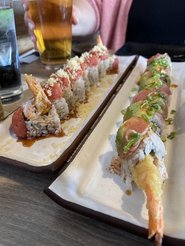 We each enjoyed two specialty rolls (fresh, beautifully presented, and full of flavor) plus a Coke and a lemonade. Our total came to about $45 before tip—and tipping was a no‑brainer, because our waitress was friendly, attentive, and super efficient.