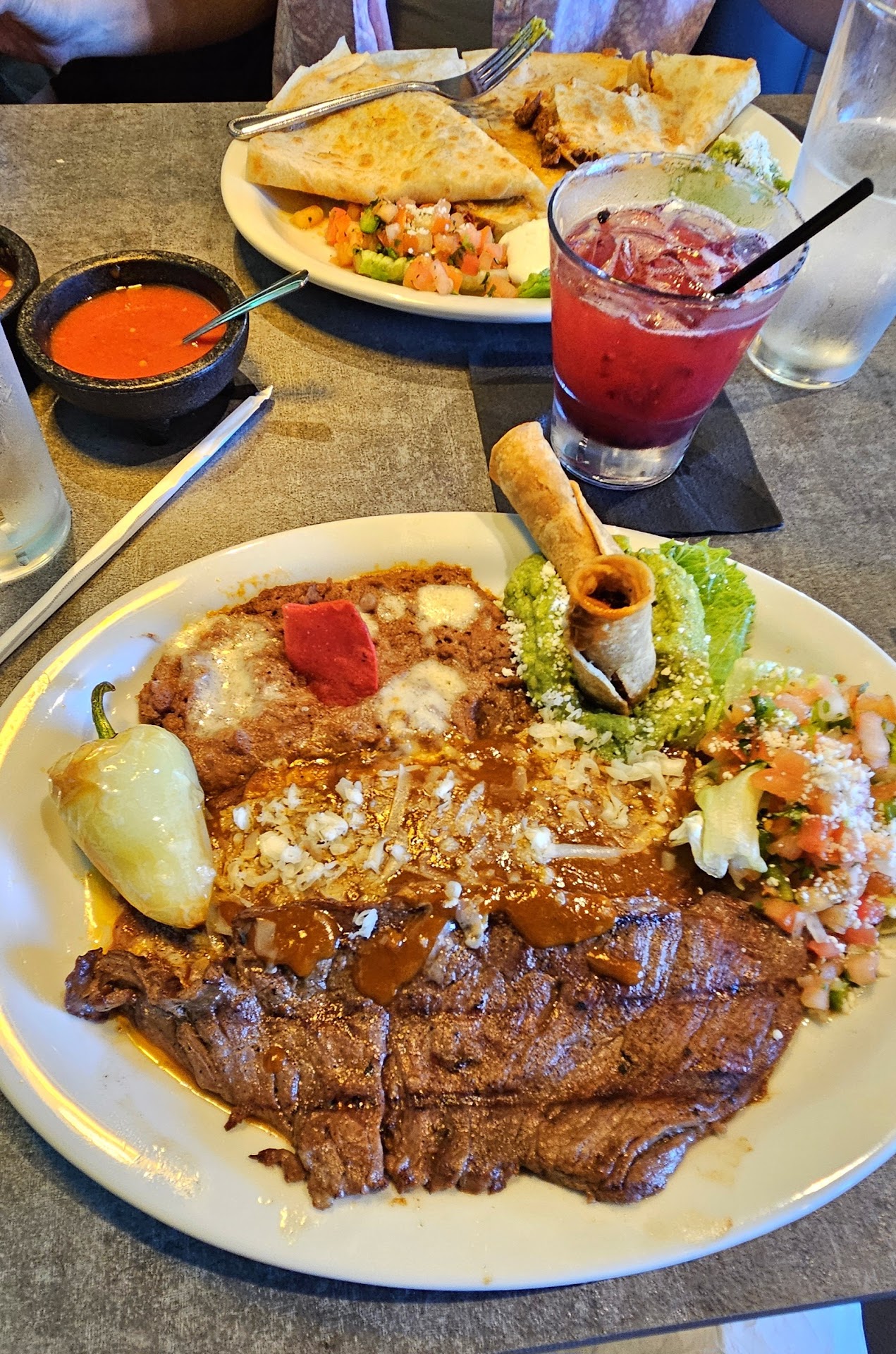 The menu was impressive. Seemed like elevated Mexican fare and that definitely manifest itself in the dishes that came out. I ordered the “Tampiquena” and it was outstanding. Among the finer versions of this dish I regularly order. The grilled skirt steak was nicely seasoned, tender and flavorful. It was accompanied by an excellent cheese enchilada blanketed with a delicious mole sauce that seemed like an old family recipe. I was truly impressed by a typically mundane enchilada. The plate was garnished with a nice portion of guacamole, or what they call “muddled avocado”. It had two taquito halves sticking out of it. I thought that was a nice touch. My wife enjoyed her “T&T Rolled Tacos” which had a generous portion of carne asada heaped on top. Chips & Salsa service was tasty. While the chips were fairly pedestrian it was a nice portion and the salsa was really good. Overall I was quite impressed and will be returning very soon. Highly...