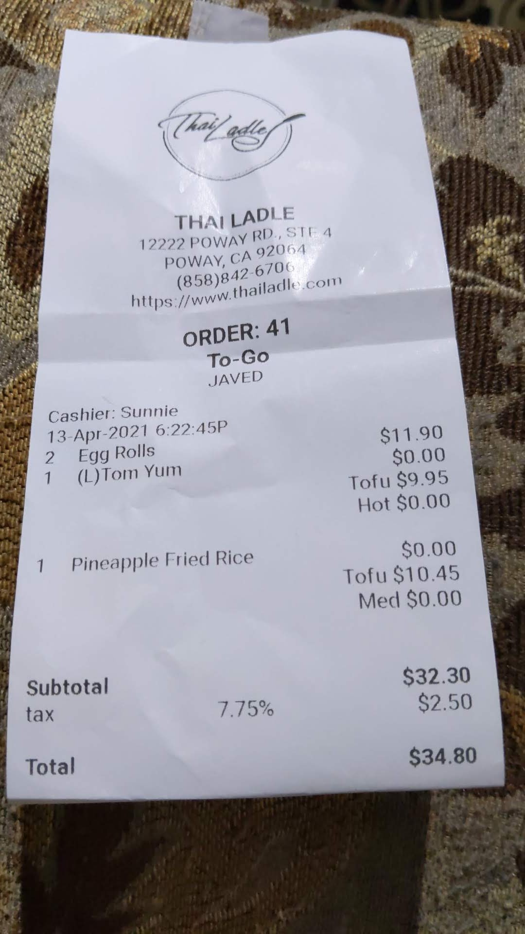 If you're going to order from Thai Ladle, I'd highly recommend choosing from other options if you want your food...