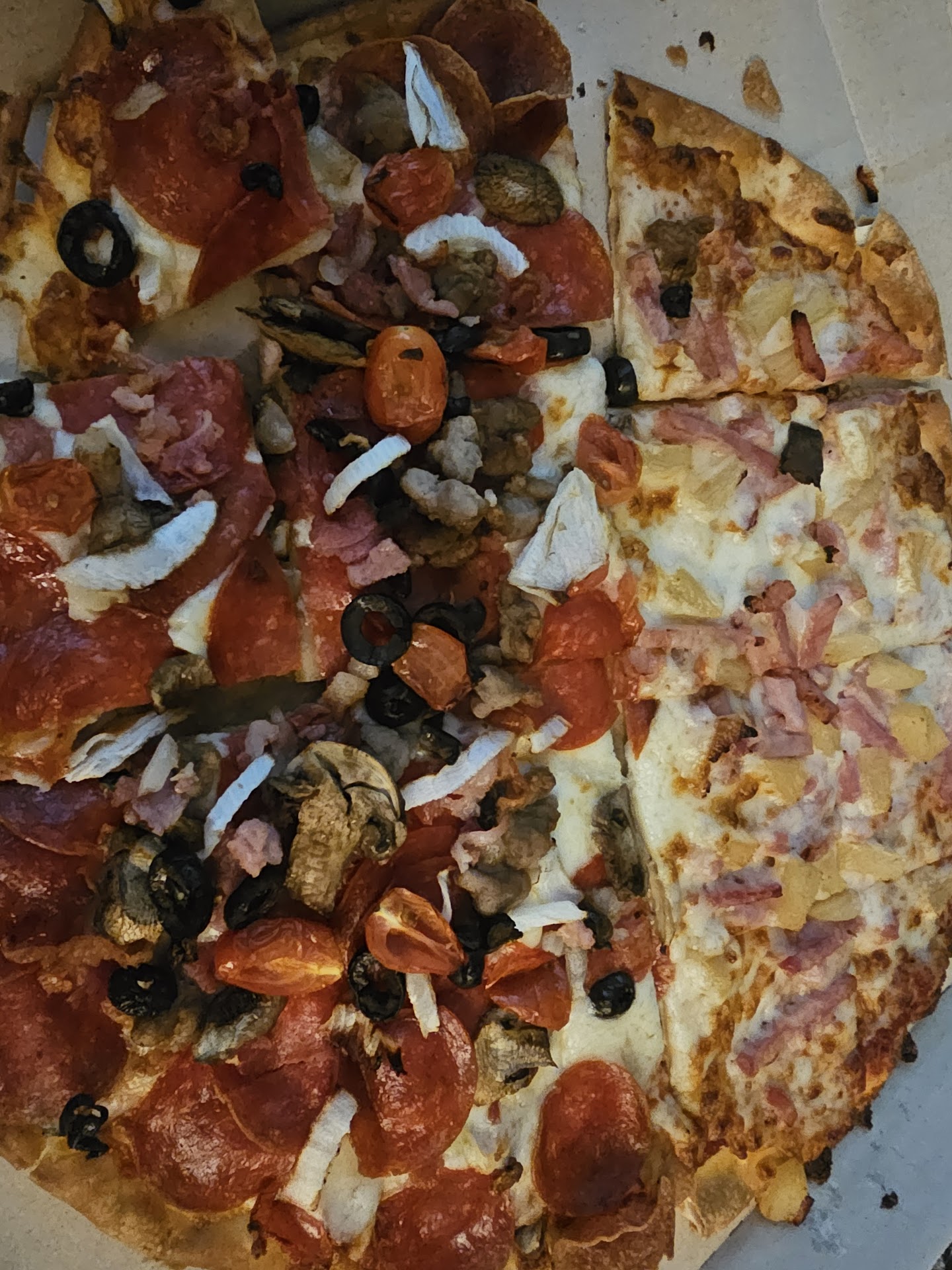 The pepperoni and bacon pizza's were not only mangled, but tasted like they were a week old. Now, that's not where it ends.