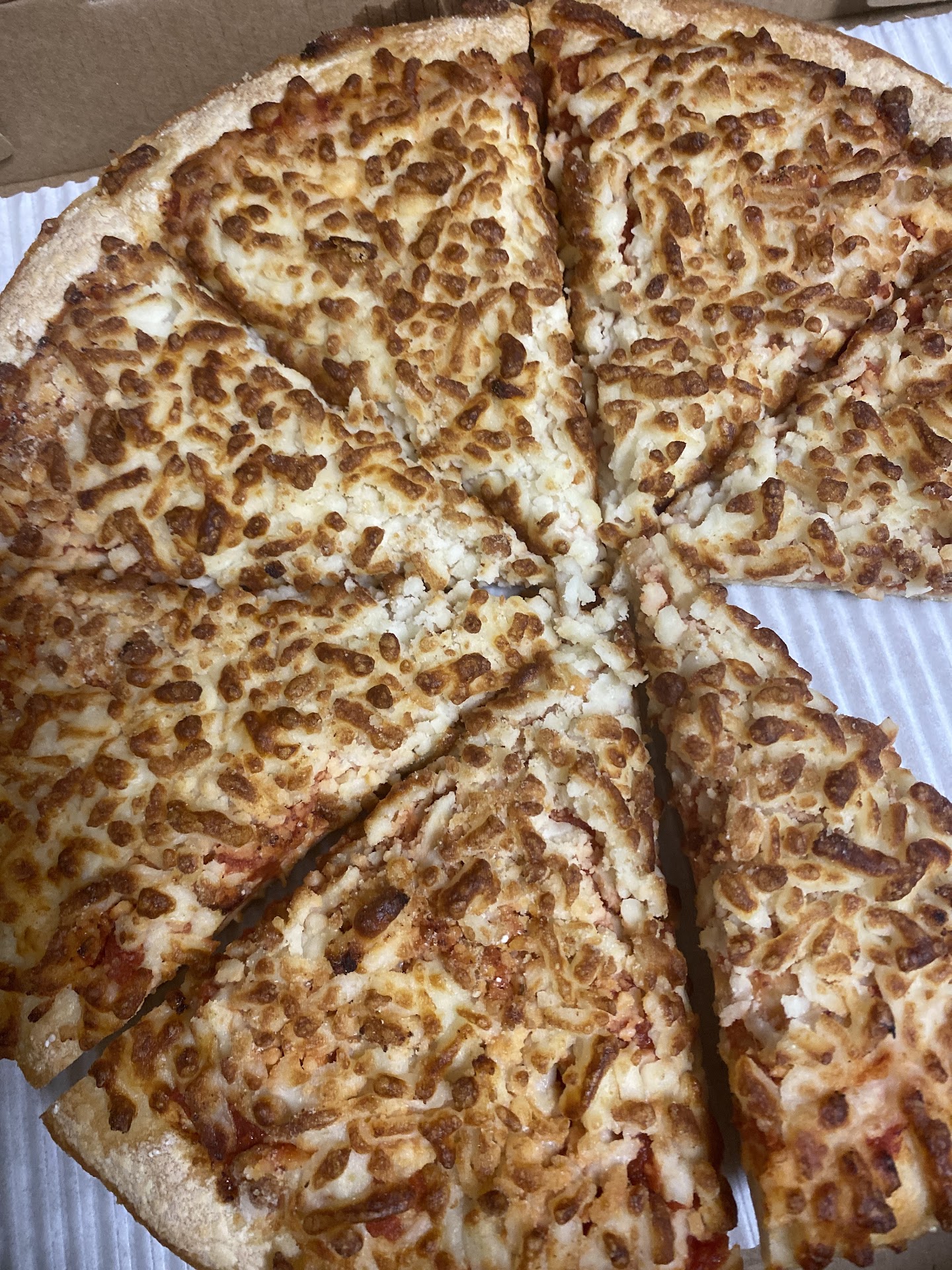 As per, the photo with the white plate under the pizza, our quote on quote "Credited free pizza" was also mangled. At this point we're all laughing at how bad the service was. We were also greeted by the same Italian delivery man, who again tries to pry a Tip.