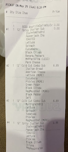 Do not order online !!! We ordered 4 sandwiches, 2 of them toasted , all of them had a lot of veggies . When I went to pick them up , ( first issue ) the man working was out in front of the building smoking. He walked inside behind me and NEVER WASHED HIS HANDS!!!! But, my sandwiches were already made so I just prayed his hands were clean. When I got the bag it felt cold. Now, with two toasted sandwiches, I expected to feel some sort of heat . But there wasn’t any. I asked the man if he toasted two of them and he looked at me sharply and said he toasted them. I figured they may of been sitting a bit so I would just re heat them. I get home and open the sandwiches, NOT A SINGLE ONE WAS TOASTED, in fact all 4 sandwiches were bread/meat/cheese.. that’s it !!!! None of the veggies/sauces were put on the sandwiches, the two that were supposed to be toasted we’re in fact not, and the two spicy Italians barely had meat on them!!! I was livid! I took pictures/videos of what I received and took them back up to the store . When I walked in , there was an employee sitting waiting on her ride and he was outside smoking AGAIN. He asked what was wrong , And when I told him he didn’t put anything on the sandwiches or toast the ones he said he did, he got mad and said “ that’s not possible , I put everything on them” and walked off . The sweet girl that was waiting on her ride got behind the counter and apologized profusely and made or sandwich’s correctly. I don’t know how he believes he made them correctly or why he thought it was ok to treat/talk to a customer the way he did . If it weren’t for the young lady stepping in to correct his mistake I would of left the sandwiches and done a chargeback with my bank....