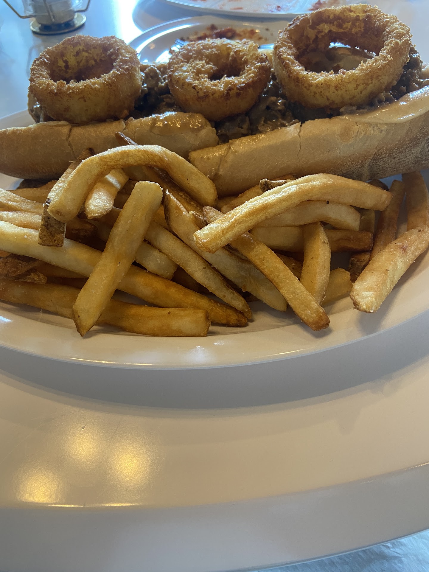 We had the Southern Charm Burger with fries and the Triple B Burger with rings. We could not have been more delighted. These were not your ordinary burgers! They are described as a short rib, brisket blend and were bursting with flavor. Not only that, they were juicy and thick. The ingredients on each burger were fresh. The flavor profile was balanced and definitely fit into the “gourmet” category. This is our new “best burger we ever ate” place!