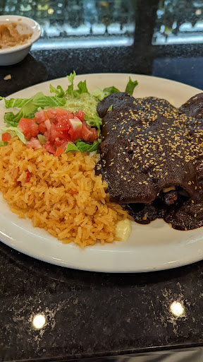 I settled on the chicken Forever Poblanas. Spicy grilled chicken rolled in corn tortillas smothered in molé sauce and served with guacamole salad and your choice of beans or rice. I chose rice because I presumptively judge every Mexican restaurant immediately based on the quality of the Mexican rice. So many serve that bland, dried out, flavorless rice, that you can just tell the quality of the meal right there. Not Patrón, this rice was fluffy, moist, and full of flavor. There were no lumps, or dry spots, it didn't stick to the plate. It was fresh and you could taste the ingredients. The guac salad was seasoned nicely, a nice refresher between bites.