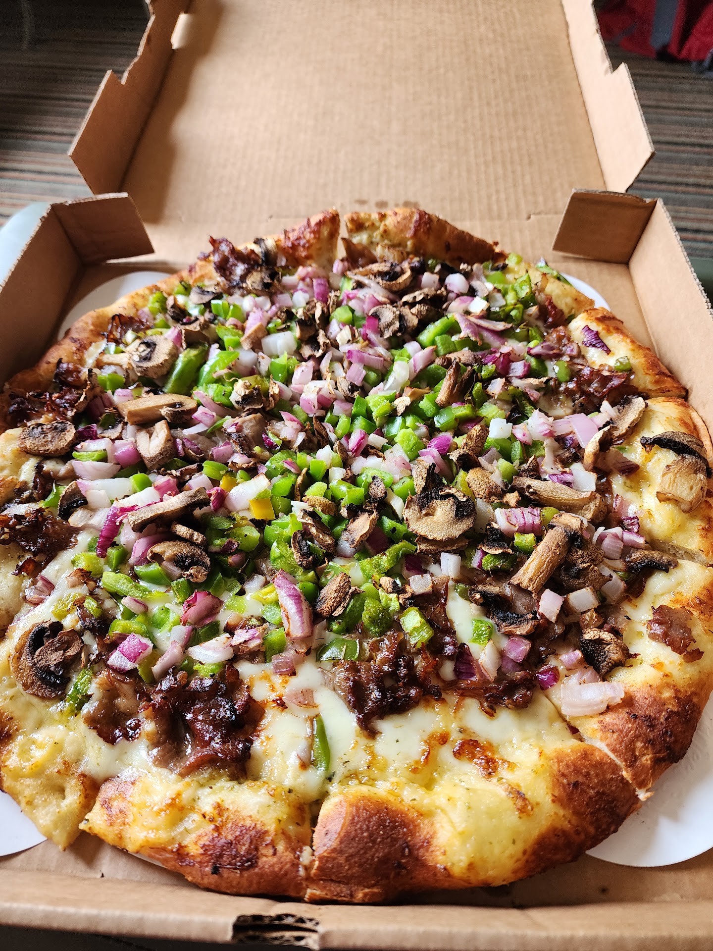 Read moreThis review is based entirely on the quality of the Philly Cheesesteak pizza on their traditional crust and their takeout service. I did not go inside.