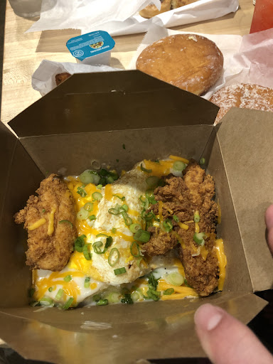 Read moreI would love to rate this place higher but after going several time in the past few weeks i feel I have a good opinion at this point.... The biscuits are hit and miss, sometimes perfect, most of the time underdone and somwhat doughy and unpleasant to eat, the glazed blueberry biscuit is pretty reliably done through though, and delicious. Their chocolate cake doughnuts with sprinkles are absolutely to die for amazing. But their tots even though they're listed as "seasoned" are really just bland tater tots with maybe some salt on them, woop de doo! Ultimately I will continue to go despite them being a bit on high end price wise, but i know better now what to order and what not to order.