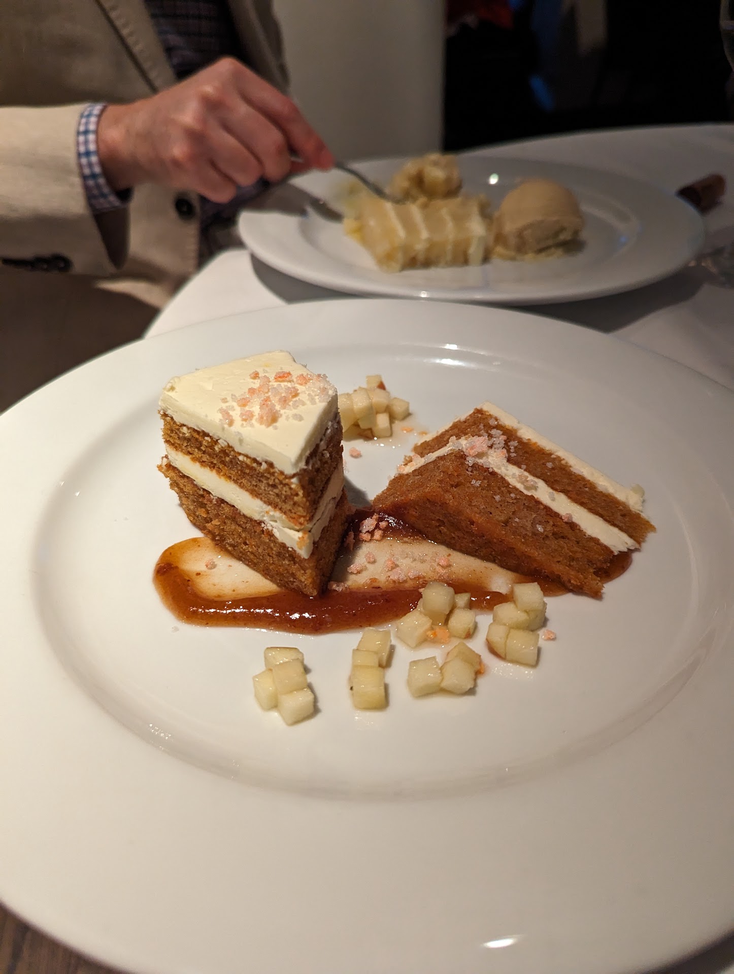 Wine list is not crazy but has a very nice selection to go with any of these dishes and a fine palate. I even got turned on to Belle de Brillet Liqueur Cognac (like a warm fireside embrace) to pair perfectly with my lemon cake. The wife had the carrot cake, which again will raise that bar to new heights, and finished up with a perfect cup of espresso.