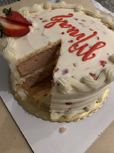 The Owner said they can’t control the heat outside so if the cake melted there is nothing they can do. However, this problem was not a cake that was melting from heat. I live 9 minutes from their shop. This cake was having problems from the buttercream not sticking to the cake. I’ve never had a cake bubble up like that. Then after a little while longer, a whole piece of the buttercream came completely off the cake.