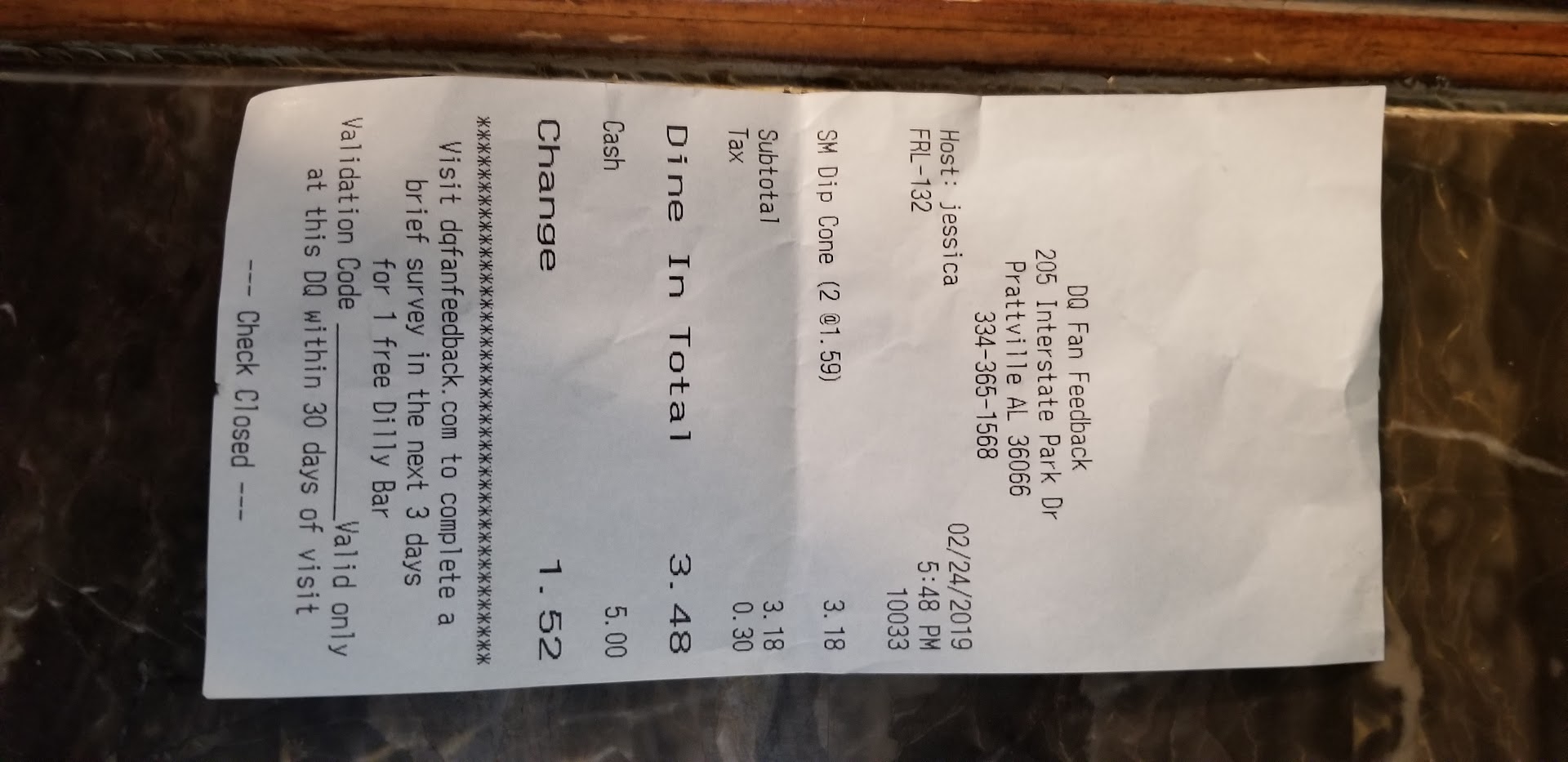 I was fairly hesitant to even order. Wanted the new hot brownie thing they had but they we're out of brownie. I got the dreamsicle dip cone. I've had it at other DQ's and loved it. This DQ had the temp up way too hot on the dip as the dreamsicle coating was thin and melting the ice cream. The ice cream was pretty good but then the cone was stale.