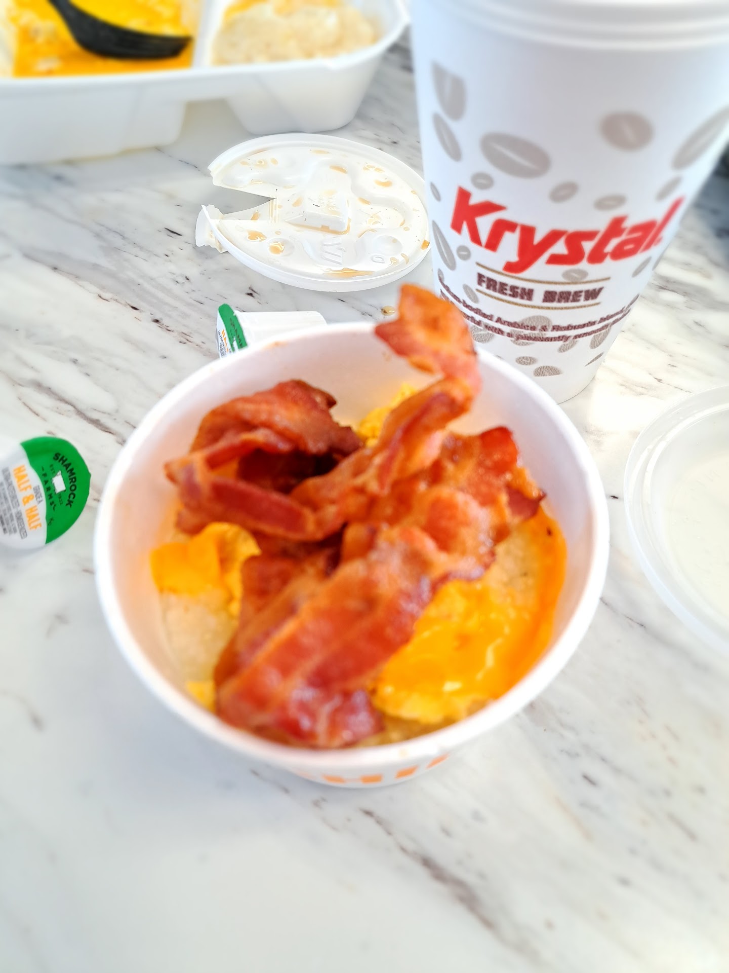 Read moreHaven't been to Krystals in awhile due to poor service, awful attitudes, & gross food. Decided to try it again this past Sat. Breakfast menu still up, a few minutes before 11. By the time someone sauntered out to see what we wanted (no greeting), told we could not order breakfast. So change the menu! Clerk was rude, surly, & obviously did not want to be there. Drink machine in dining area "broken" & all condiments removed from area. Got our food, burgers had a pin-head size drop of mustard on them. Went to counter & asked clerk for mustard. She completely ignored me & went to kitchen to hide out. After a few minutes, I actually walked behind the counter & got the mustard myself. A family of 5 came in & stood at counter for over 5 minutes before anyone came to wait on them. We were the only folks inside & drive-thru was not busy. The burgers were not good, fries were ok. All reminded me of why we no longer visit this Krystal. These folks definitely need attitude adjustments, which is a reflection of poor management. If you don't want to be there, find...