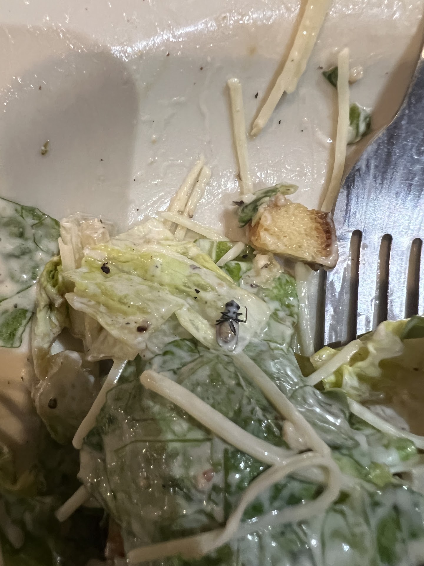 The salad came without anything more than lettuce and was drenched in dressing. No onions, cheese, tomatoes, or CROUTONS. Simply lettuce and dressing.