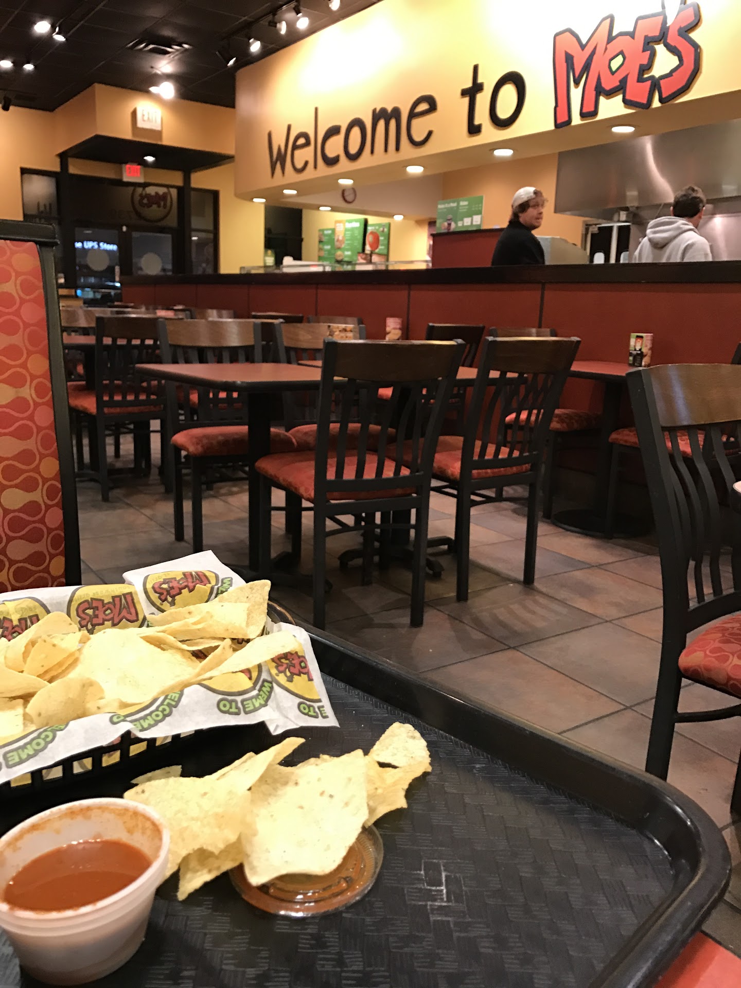 Read moreMoe's does not necessarily strike me as a bad restaurant in the slightest. The food was good, the service was good, and the floors and tables were clean. However, when I compare the restaurant to another Mexican-themed chain less than 1-mile away, the other store gets my popular vote.