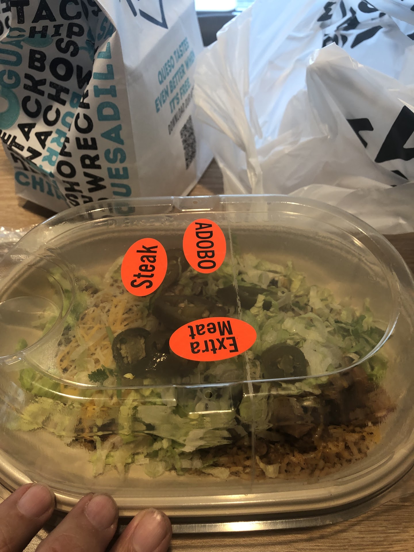 The amount of food you get really varies. I'm not a fan of that. I wish there was more of a consistency there. I go sometimes and I get plenty of food and then I go sometimes and my container is half empty.