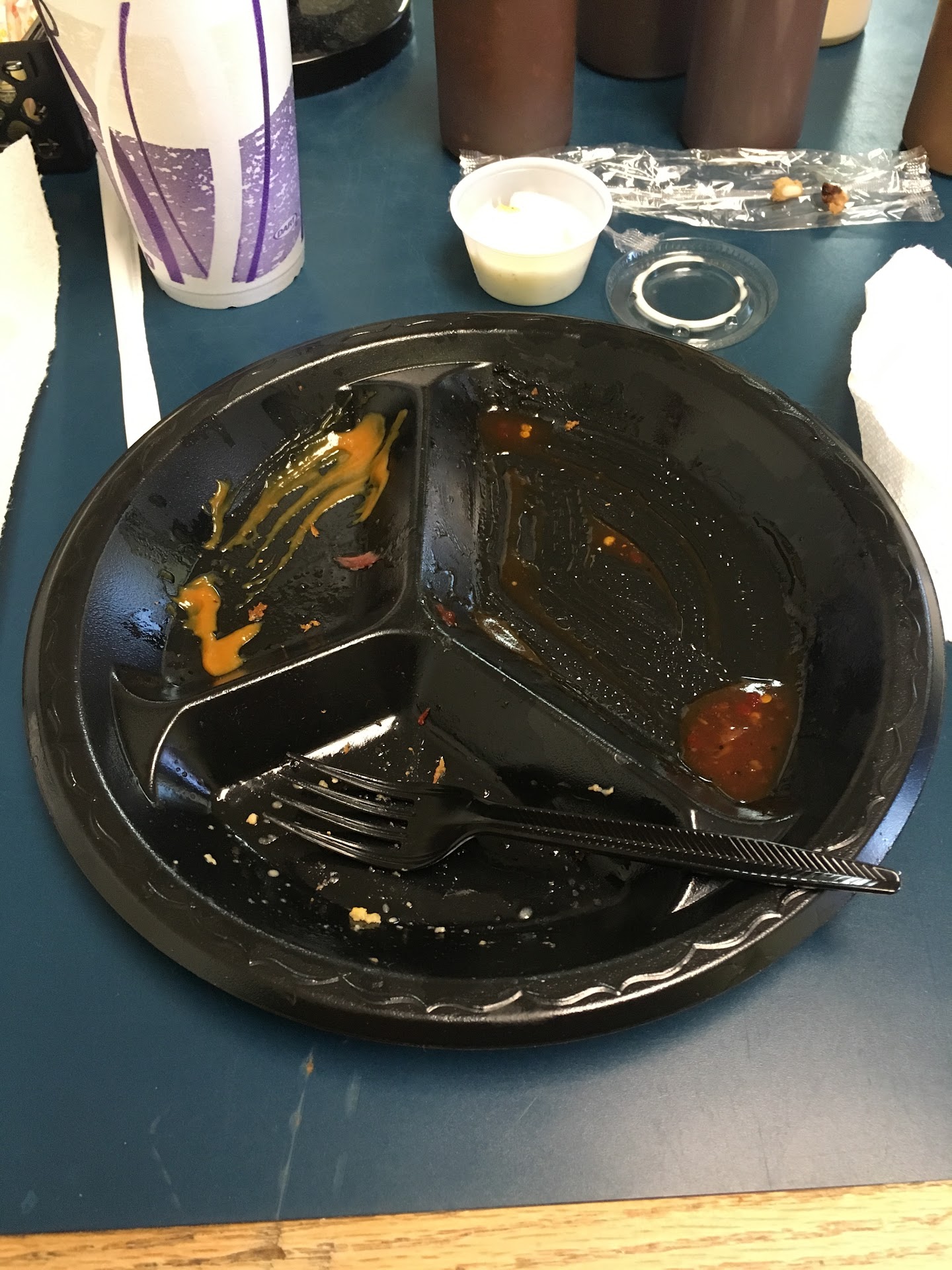 The white sauce was tasty - which was a plus, the reddish brown BBQ sauce was not so tasty - had an Asian flair