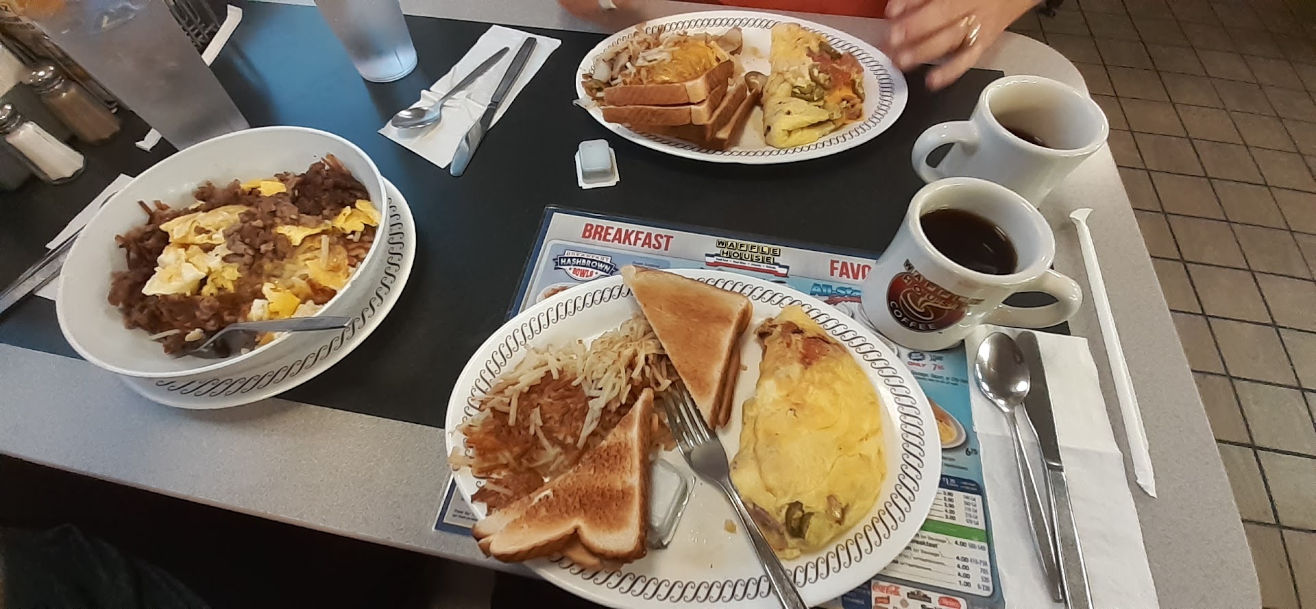 Read moreWho doesn't love some Waffle House? This Waffle House was not busy when we went in for take-out. The waitress was very friendly and greeted us immediately. Couldn't ask for a more attentive waitress and frankly very professional. The only other WH employee was a woman cook on the griddle. Bless her heart, she was not having a good night I guess because I felt sorry for her coworker (friendly waitress) because she was pretty gruff with her. She overcooked the dickens out of the scrambled eggs (ordered soft scrambled) and breakfast steaks (ordered medium) on the 2 steak and egg plates. She burned the raisin toast on the patty melt plate. She undercooked all 3 double orders of hash browns. She got the toast on the stk&egg plates just right though, seriously, she did. So, it's a rarity that one gets poor food from Waffle House, but in this instance, the food left a bit to be desired. The Dr. Peppers & coffee were great. And again, while waiting for our food, the consummate professional kindness and attentive nature of the waitress on refills and updates meant the difference between a 4-star versus a 3-star rating; however, since we went for what we thought would be $45 worth of good food, it should probably be the difference between a 3-star versus a 2-star experience. Could have just been the cook's bad night, right?? I'm giving her the...
