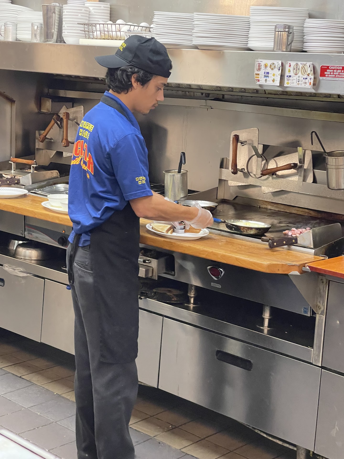 The first food out was an omelet that didn't look good at all, super greasy, not fluffy, I swear, looking at it, I wasn't sure it was made of eggs. Just terrible omelet, no other way to say it.