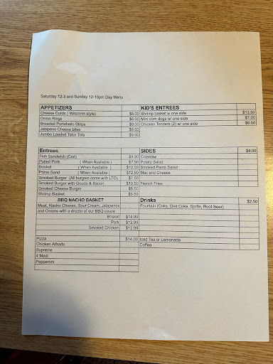 Read morePathetic! to say the least. Went Sunday 18 Aug 2024. First off there were no ribs, and you could only get brisket, pulled pork or Prime rib on a sandwich, you couldn't order as a stand alone item and they didnt have any Prime rib for a sandwich or otherwise. The smoked chicken you could only get on nachos. It says alot about a barbecue place when the first entree item listed on their menu is a cod sandwich, which I'm guessing is frozen and deep fried. Ribs are only on friday we were told. And the prices are outrageous...$12.50 for a sub par brisket sandwich. Don't waste your time with this place if your looking for a good...