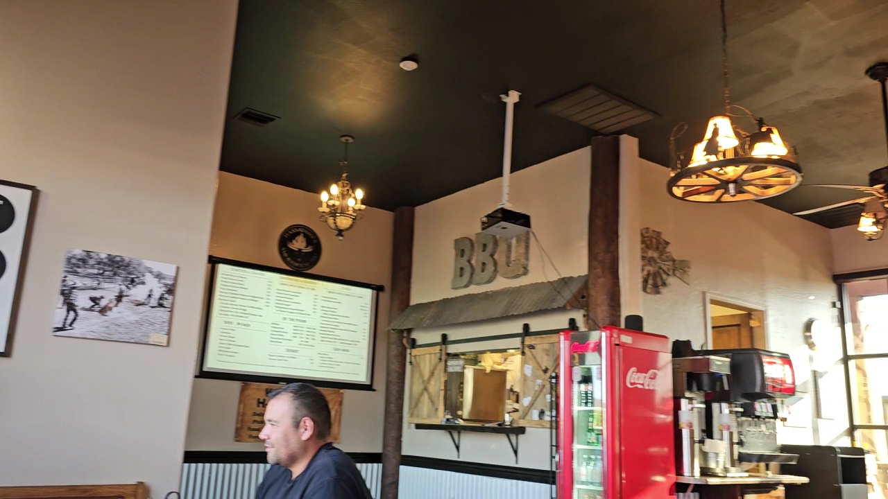 Read moreFriendly staff, restaurant is clean and nicely arranged. The food was a mixed bag. Ate there this evening, not busy. We ordered at counter, not a long wait before food was delivered. Wifey had the GF smash burger and the tangled onions. Good job with the GF bun, the cook grilled it. The pattie was not truly a smashed burger such as what they have at Sammies. Her food was not hot, Tangled fries were a bit greasy. I had the sampler platter. It was not hot upon delivery. The ribs were good, tender, fall off the bone. The brisket was very good, moist with a nice exterior crisp. The pulled pork was flavorful and tender. The only drawback to me was the temperature. The coleslaw was great, am assuming housemade. The fries were different than any I have had, kind of like steak fries. They were crispy and very good. The cornbread appeared to be cooked skillet style, possibly with bacon grease? It was good. The prickly pear BBQ sauce was tasty with a bit of spice. I guess with "Smokehouse" in the name I anticipated more of a smoky flavor in the meat. I like BBQ joints that smoke the meat up fairly heavily. Not so much smokiness but the meat was good. I know it is a challenge to get food to a table with steam still rolling off the plate but they need to do better in...