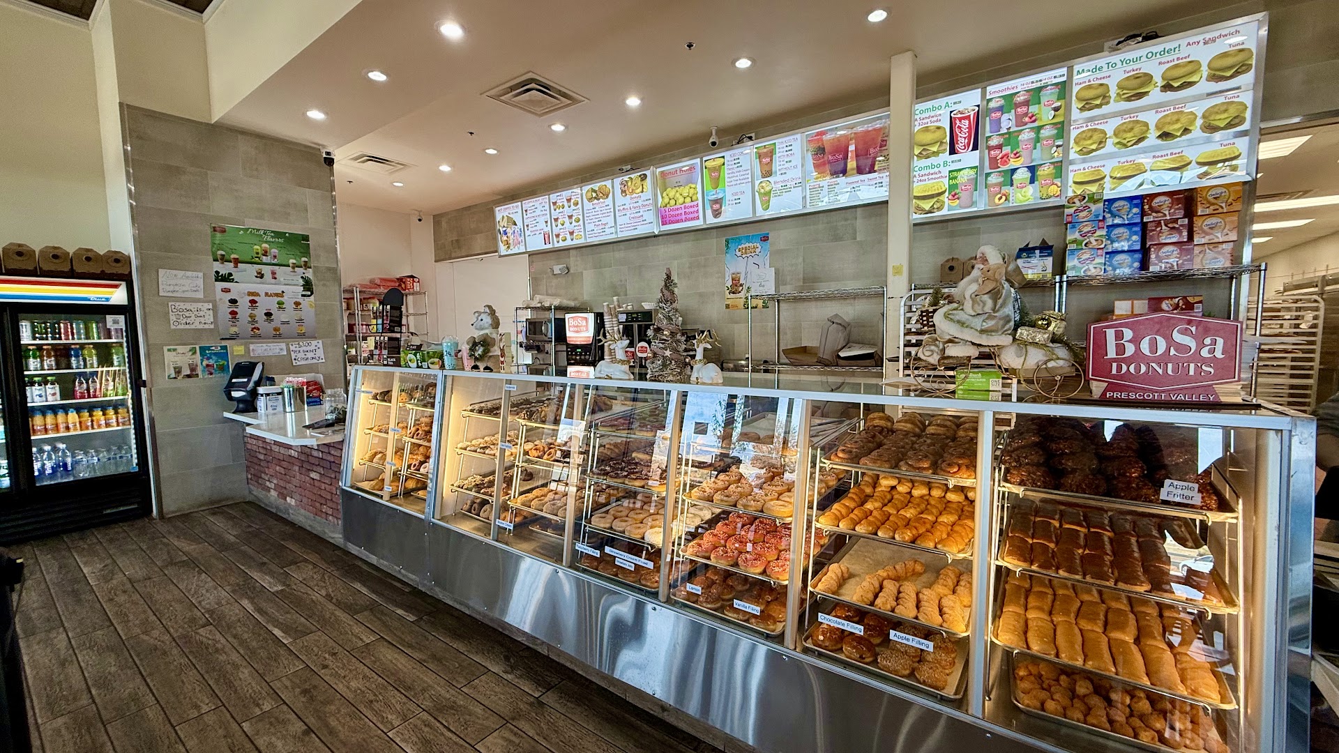 Went through the drive thru as a birthday celebration with my entire family. Ordered some breakfast, a few drinks and some donuts. Had to repeat order at least 3 times for them to understand what I was wanting. Was put on hold a couple times at the speaker and then proceeded to pick up the order. Had to then repeat the entire order at the window. It was not windy and there wasn't any noise that would have been disturbing the audio at the speaker box. We got our food and proceeded home. I got about half way home and realized our drinks were not with us. I get it, it was on me for leaving without the drinks, but with everything else that we had ordered and the kids excitement of getting donuts I had totally forgotten. We returned to the Bosa, and it was 3 cars deep in line at the drive thru so I proceeded inside and was met by a very annoyed person at the cashier. She didn't believe me that I had ordered, but then after repeating what I had ordered she finally looked it up and found the order. She said that I hadn't been charged for the drink, even though I believe I had and was told that I would have to pay again. At this point I had already had to repeat my order 5 times and they still hadn't gotten it right and I was having to pay for a drink twice that they forgot to give me, so I just left. I had left my wallet in the car and I was just done with the experience. I have been here previously and I was not impressed this time. The donuts were barely filled, were extremely cold and mushy almost like they were made the previous day and left to sit in the store overnight. The ham cheese and jalapeno croissant I got was decent, but had very little ham on it. The Bosa in Phoenix that I am used to going to has always been spot on, not sure if the management just doesn't know how to run the store effectively or if they have just expanded way too much. I was very disappointed at my experience at this store and will not be returning...