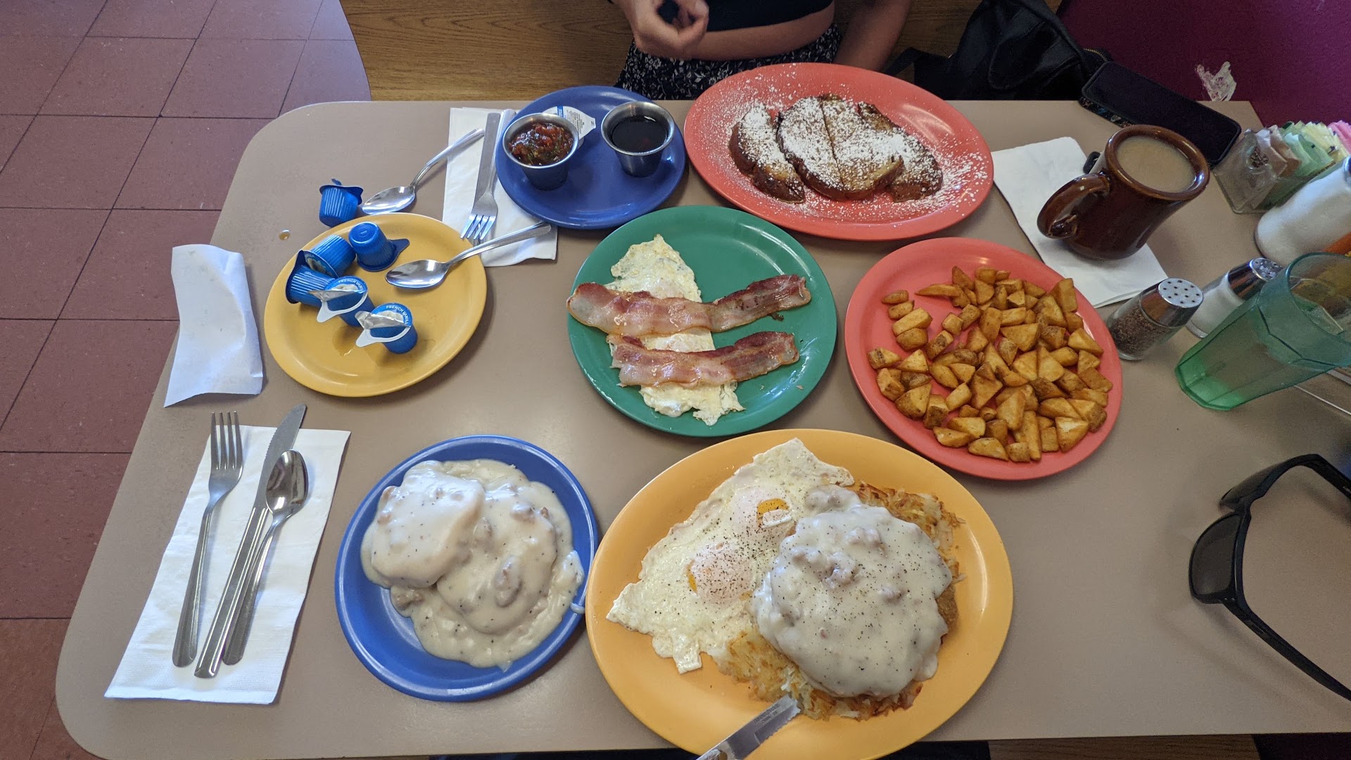 Read moreGluten free french toast was the reason we picked this spot, and I'm glad we did. After a few days camping, we decided to pack up camp and treat ourselves to brunch instead. We had the best server ever (Emma), that exchanged witty and joking remarks that really made us feel like we had been friends forever. We had the gluten free french toast special with two eggs and bacon cooked soft, half side of country potatoes, country fried steak and eggs(the special that day) with hash browns and even a biscuit and gravy as the side which is a great deal. Everything was hot and delicious this last Sunday 8/15, and we rarely get away with breakfast under 30 for the two of us foodies. THEY ONLY ACCEPT CASH OR CHECK, but we noticed this while researching reviews and there is a sign on the door, plus our awesome waitress mentioned it before we ordered. So all of the people who act like they are surprised or mad, just do better, u can do it. It's 2021, look up reviews and Google things first🤷♂️. All in all, we'll be back if we're ever in the area for breakfast again. Thank you Emma for everything and keep that awesome...